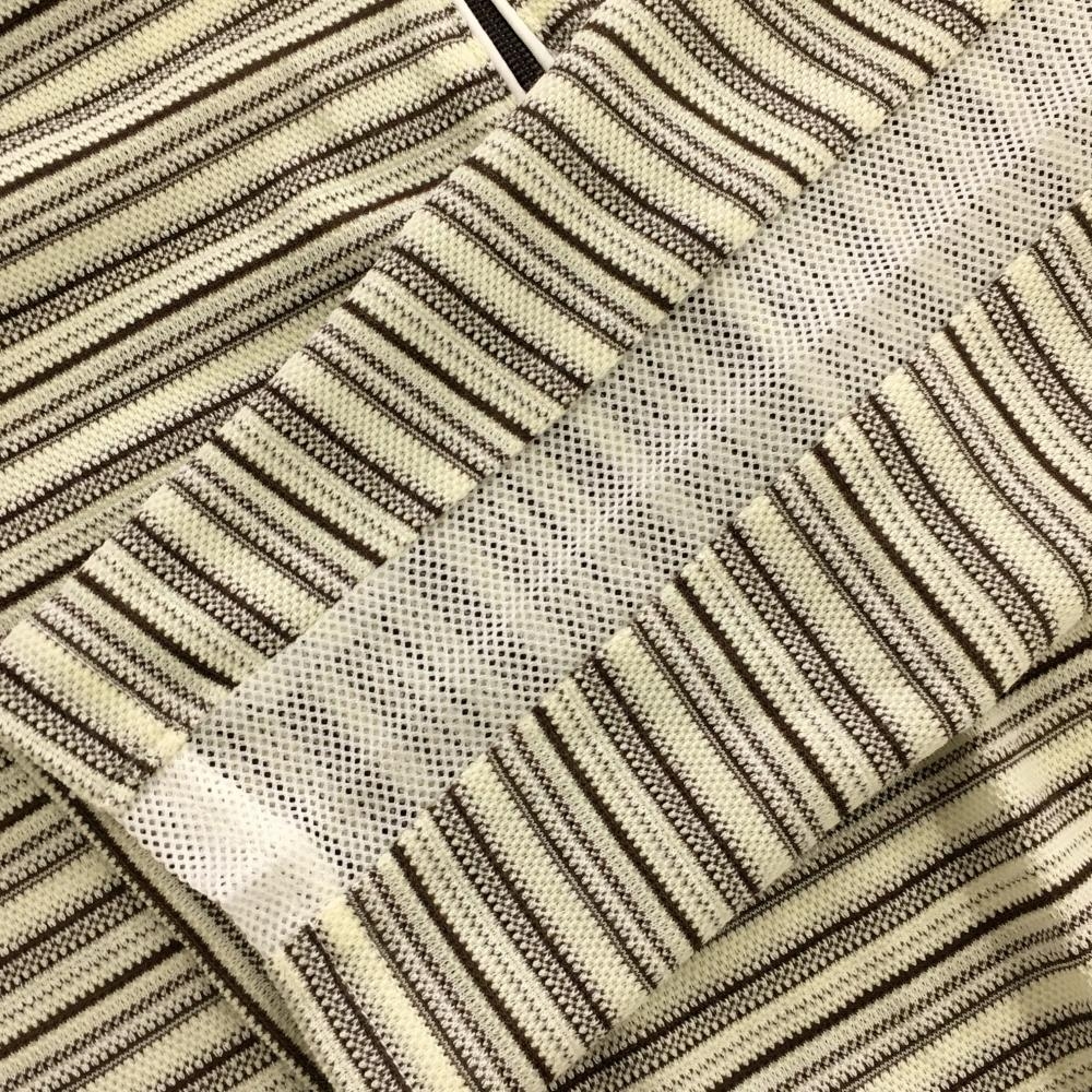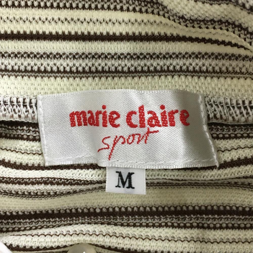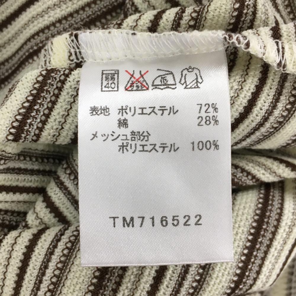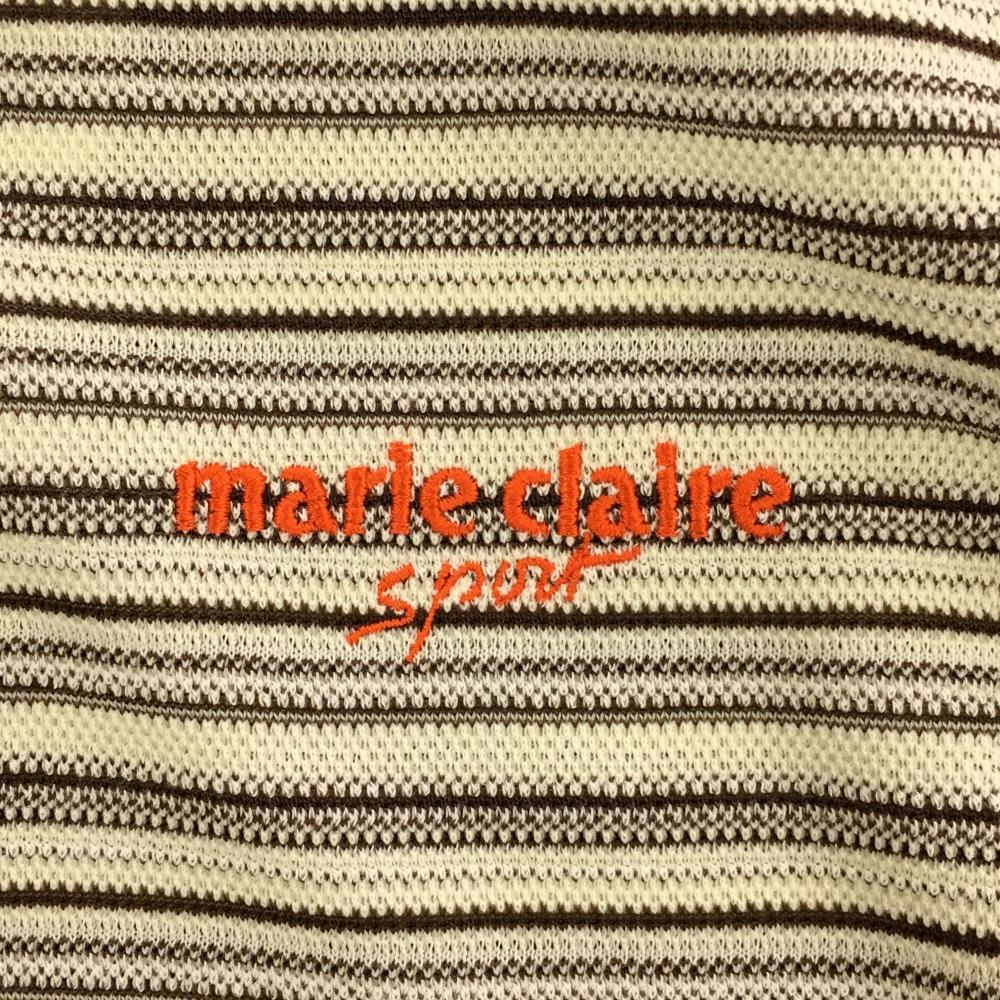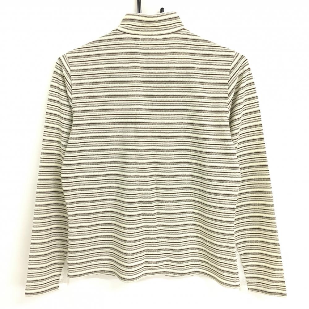 【美品】マリクレール 長袖ハイネックシャツ ベージュ×ブラウン ボーダー ハーフジップ レディース M ゴルフウェア marie claire