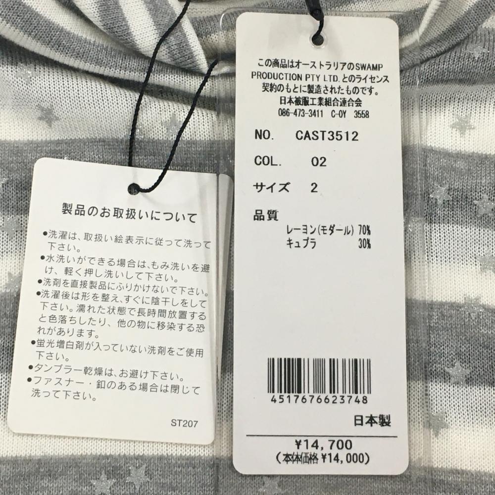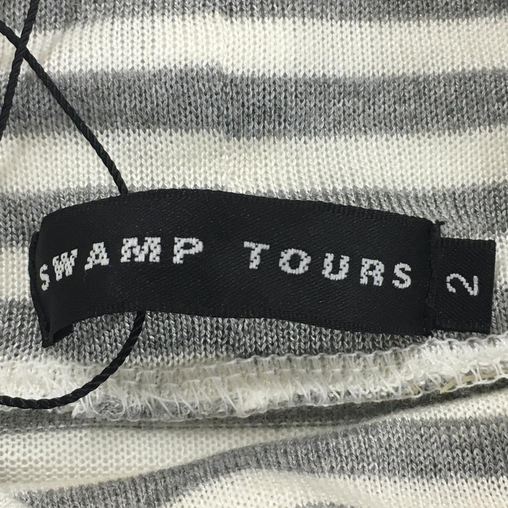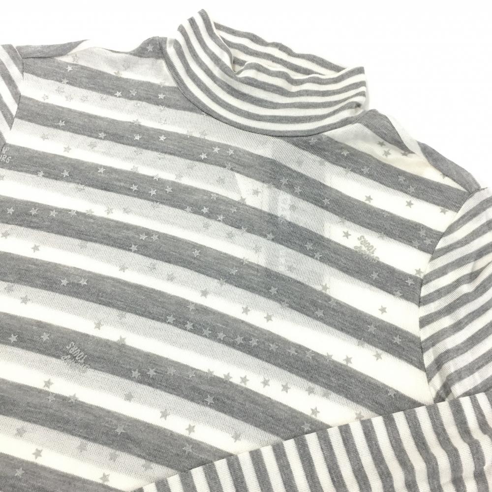 【新品】スワンプツアーズ 長袖ハイネックシャツ 白×グレー ボーダー×星柄 ラメ レディース 2 ゴルフウェア swamp tours