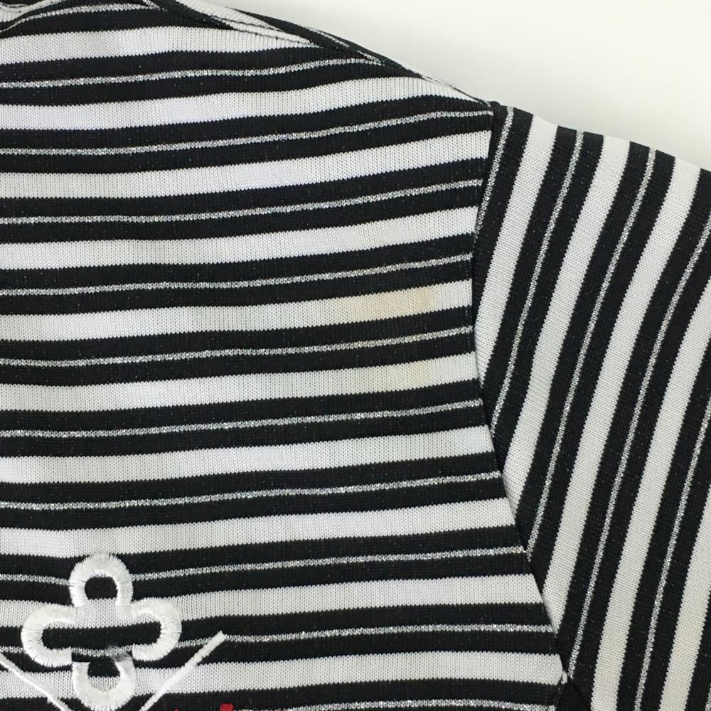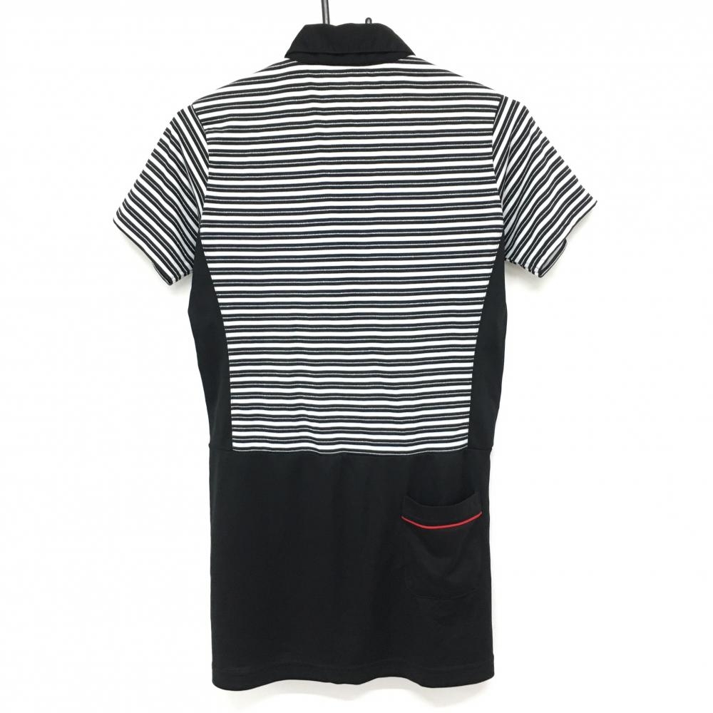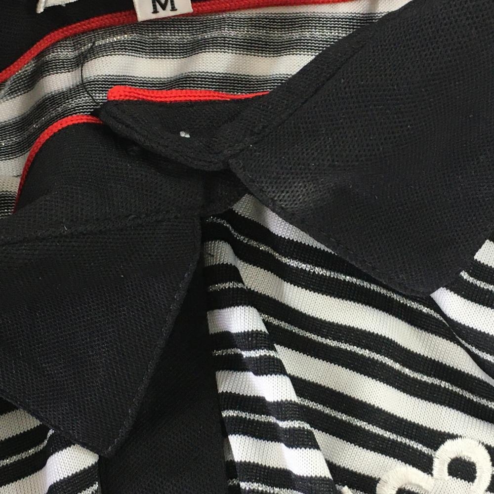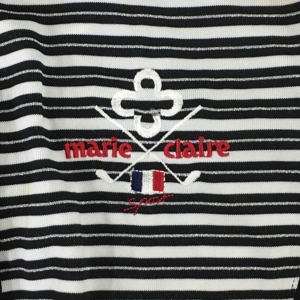 マリクレールスポール 半袖ポロワンピース 黒×白 ボーダー ラメ レディース M ゴルフウェア marie claire