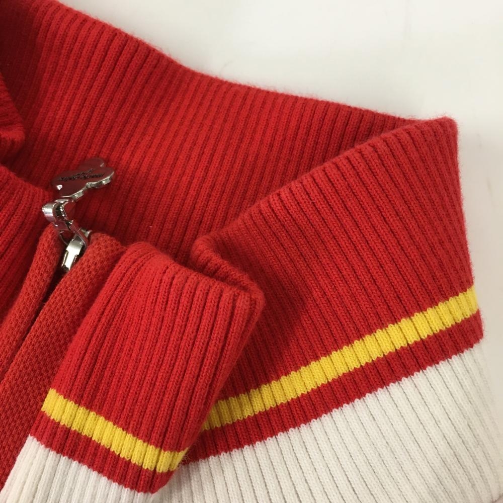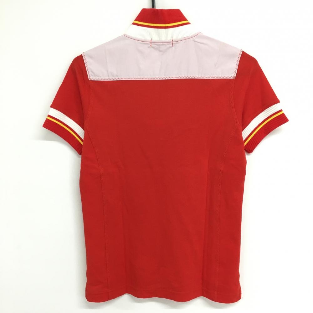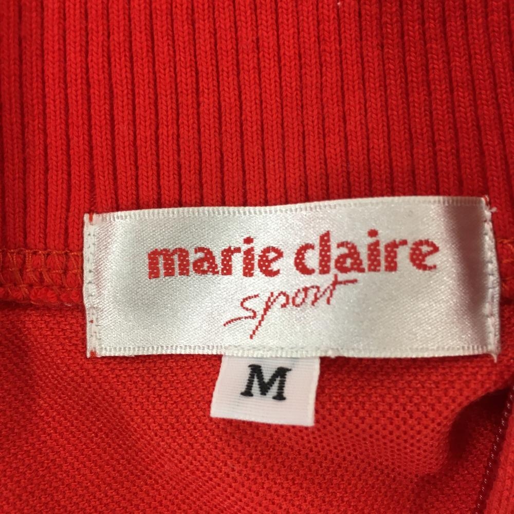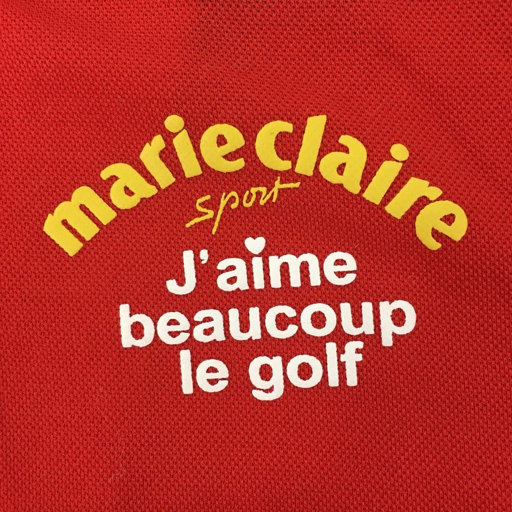 【美品】マリクレール 半袖ハイネックシャツ レッド×白 ハーフジップ ロゴプリント レディース M ゴルフウェア marie claire