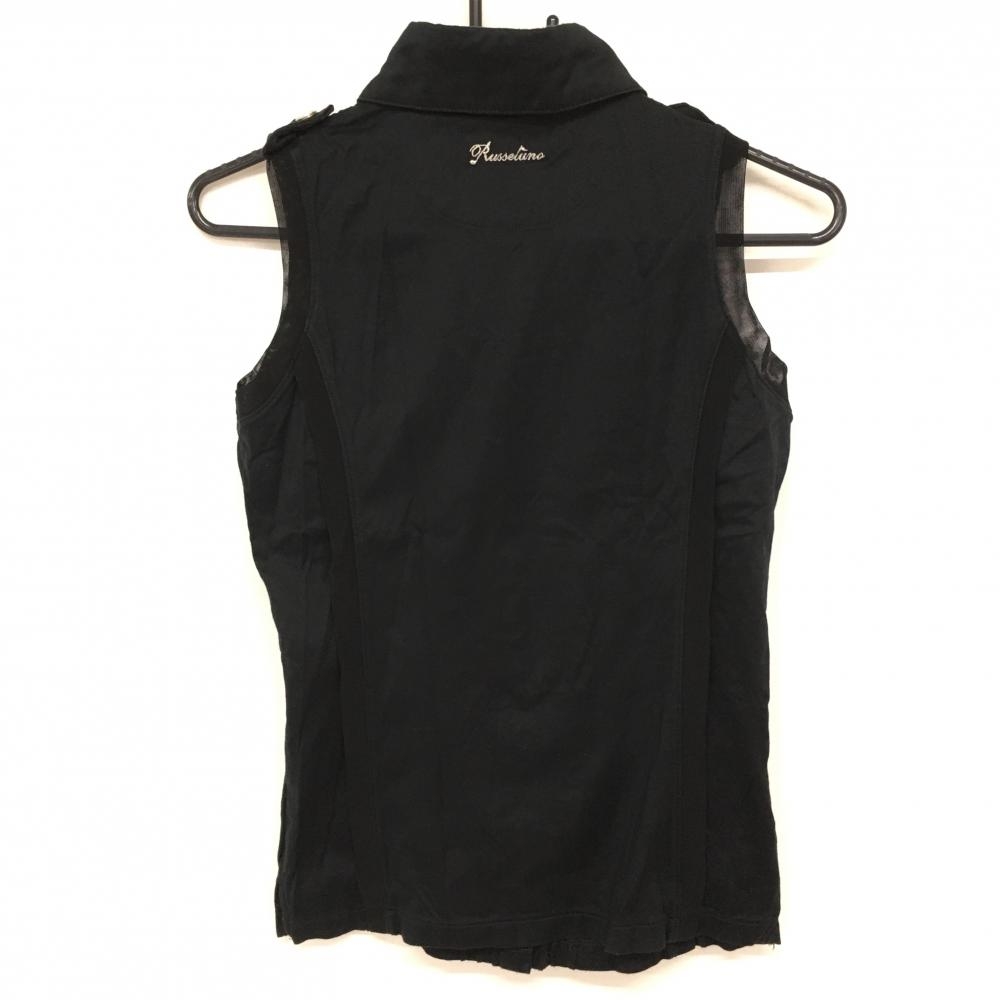 ラッセルノ ノースリーブポロシャツ 黒 ラインストーン 肩ボタン レディース S ゴルフウェア RUSSELUNO