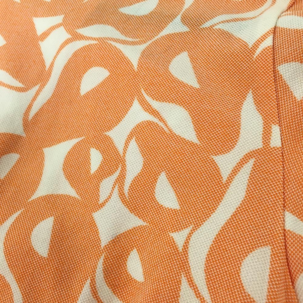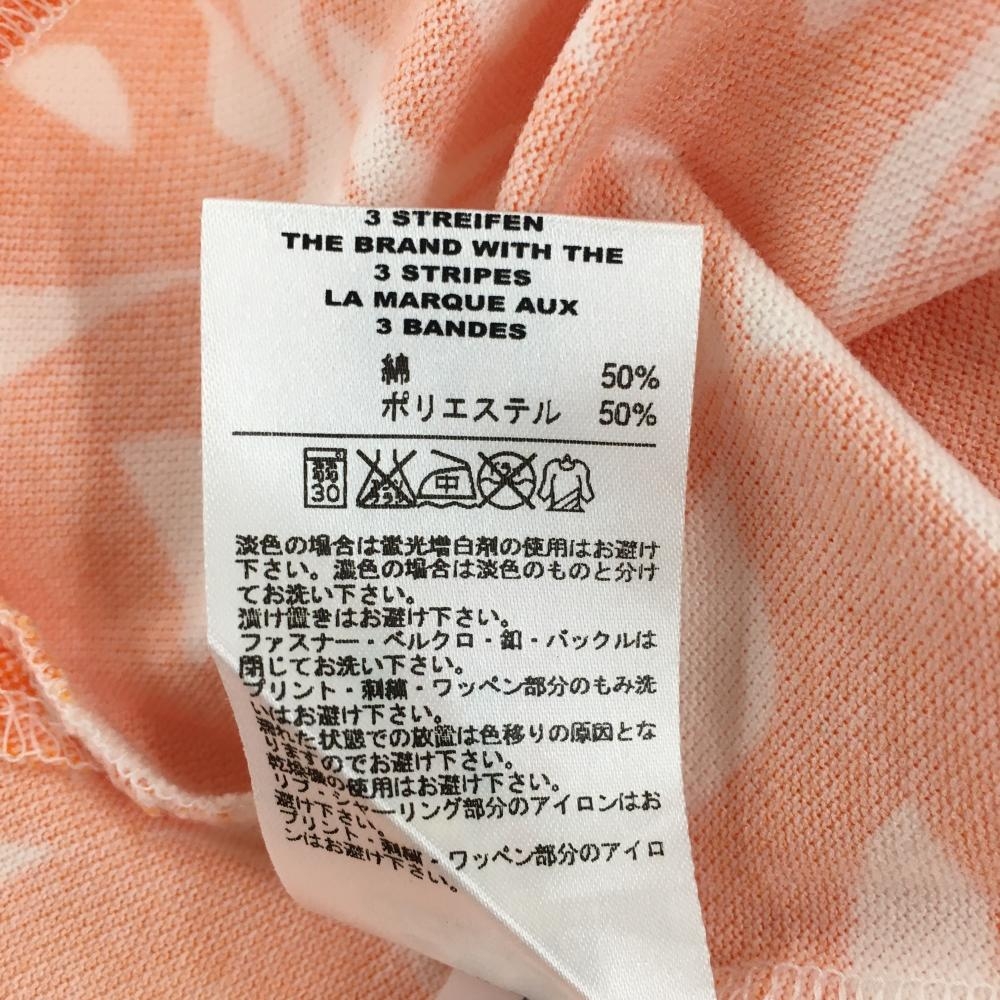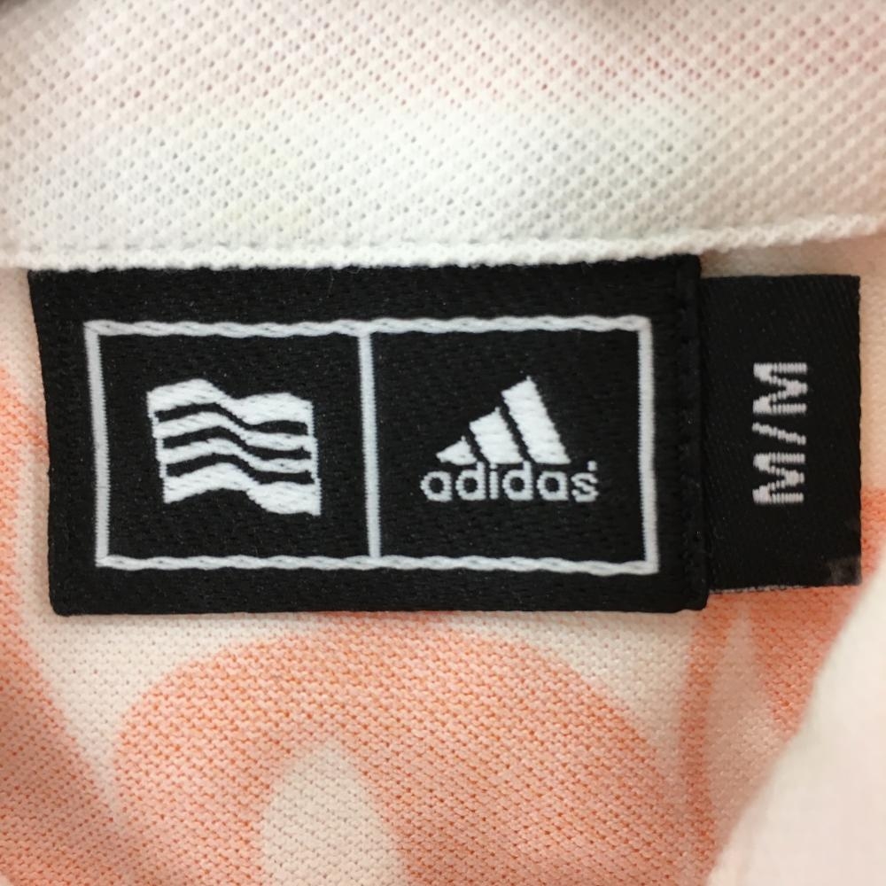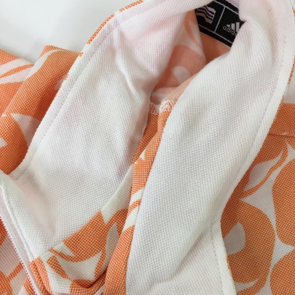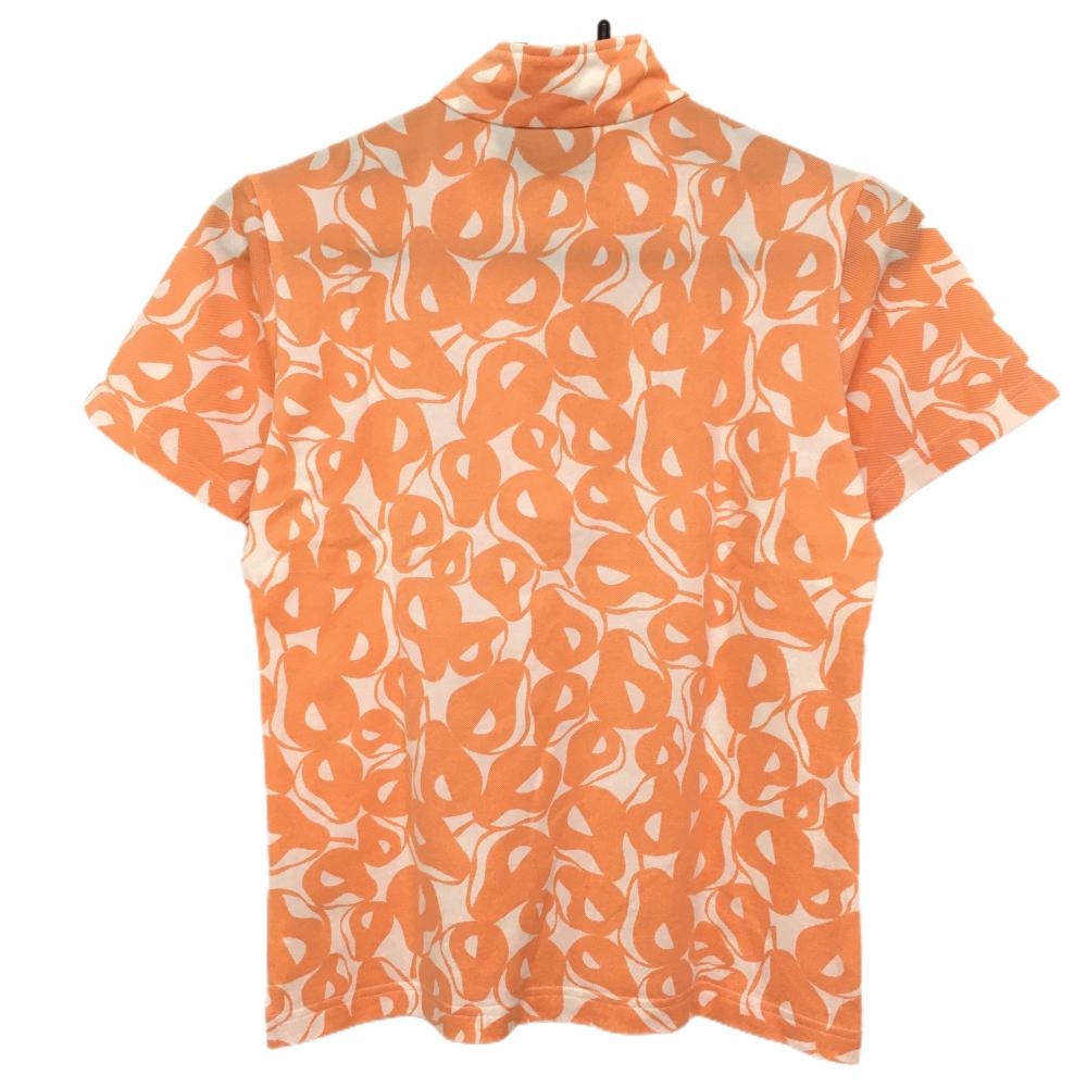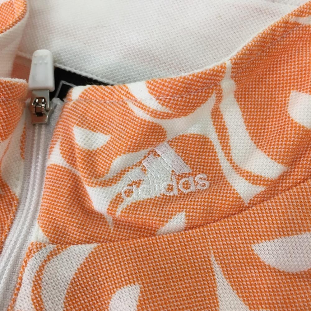 アディダス 半袖ハイネックシャツ 白×オレンジ 総柄 ハーフジップ ネックロゴ刺しゅう レディース M/M ゴルフウェア adidas