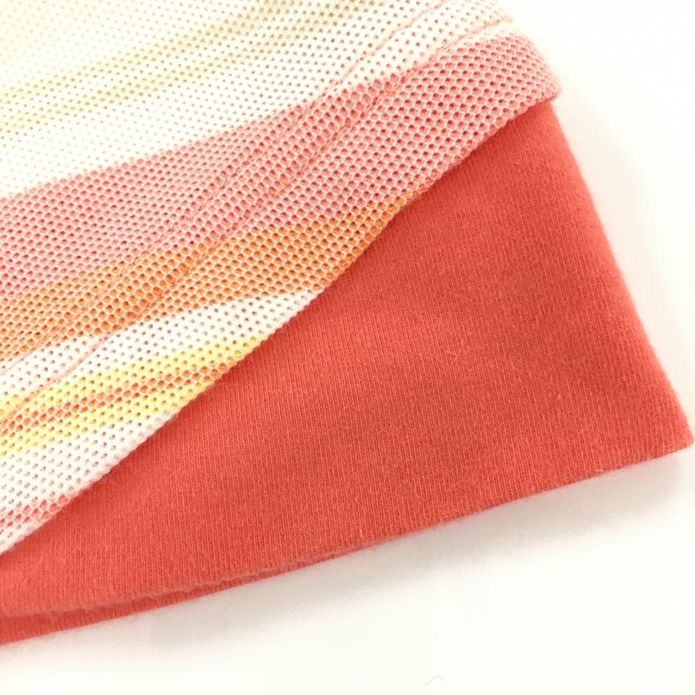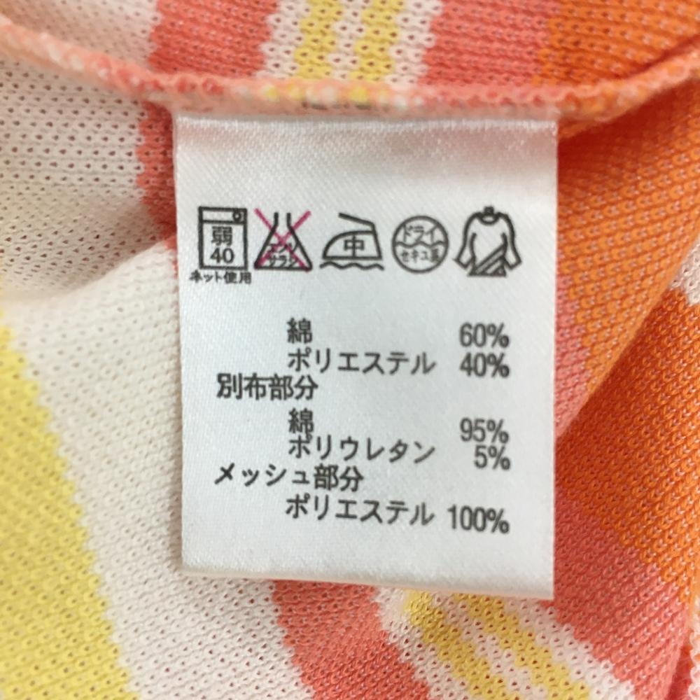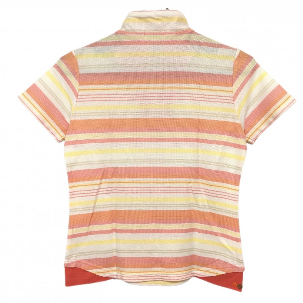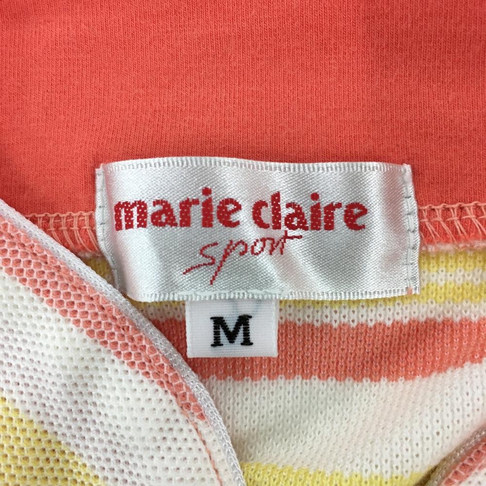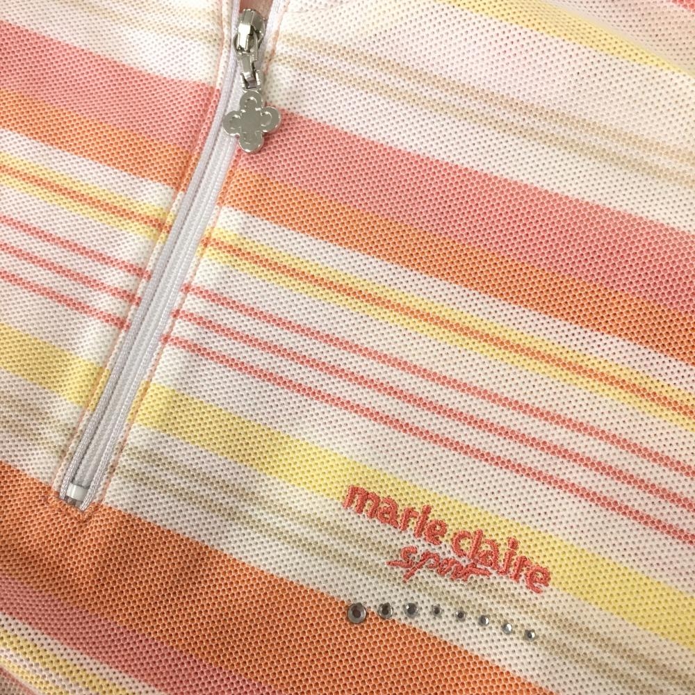 【美品】マリクレール 半袖ハイネックシャツ アイボリー×ピンク ボーダー柄 ハーフジップ レディース M ゴルフウェア marie claire