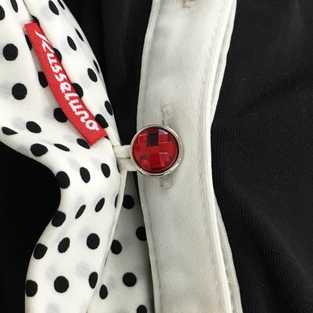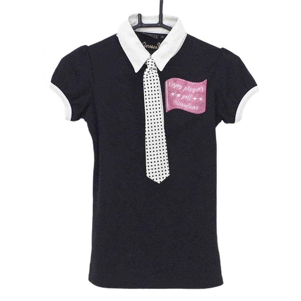ラッセルノ 半袖ポロシャツ 黒×白 胸ワッペン ドットネクタイ レディース 0(S) ゴルフウェア RUSSELUNO