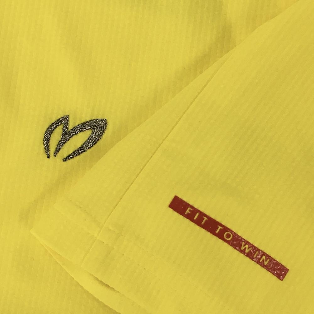 【美品】マスターバニー 半袖ハイネックシャツ イエロー ストライプ織生地 メンズ 4(M) ゴルフウェア 2022年モデル MASTER BUNNY EDITION