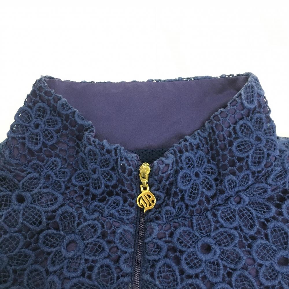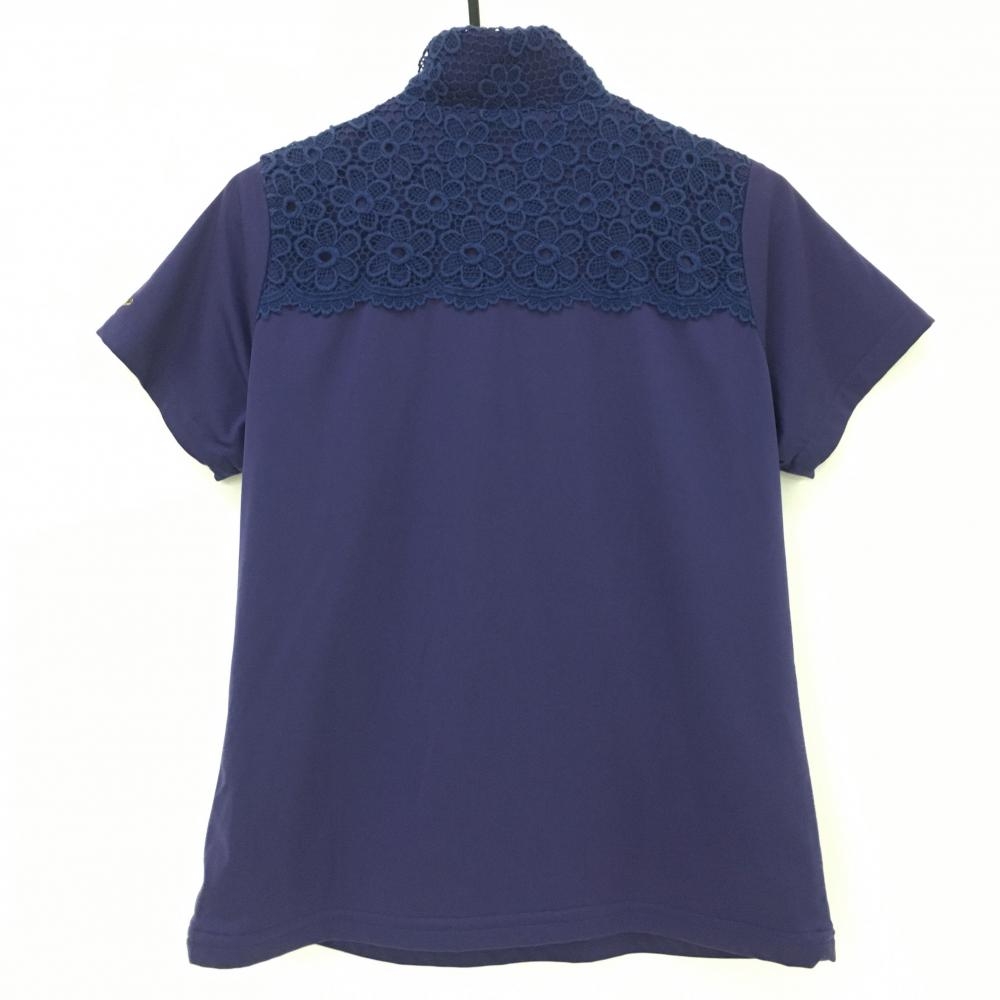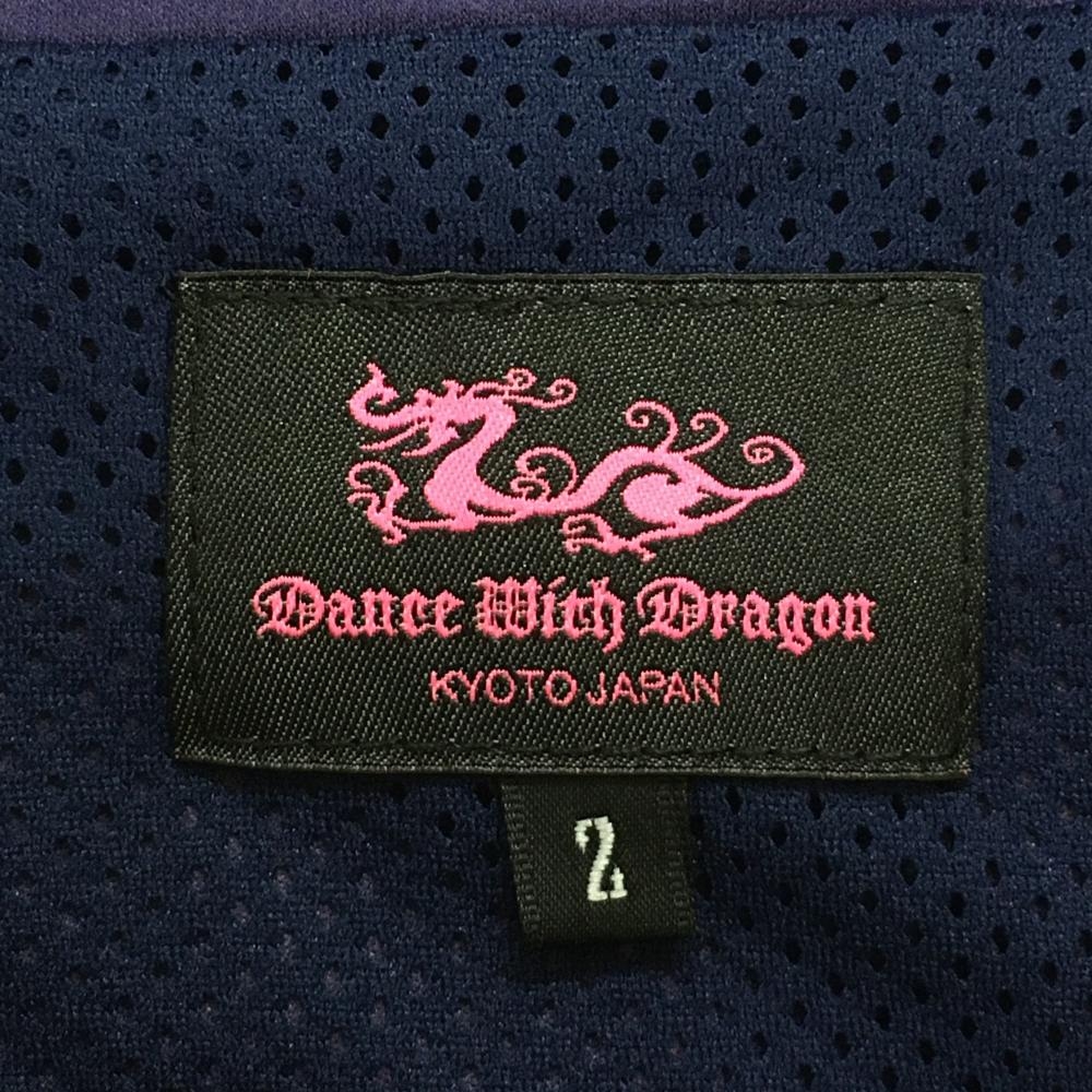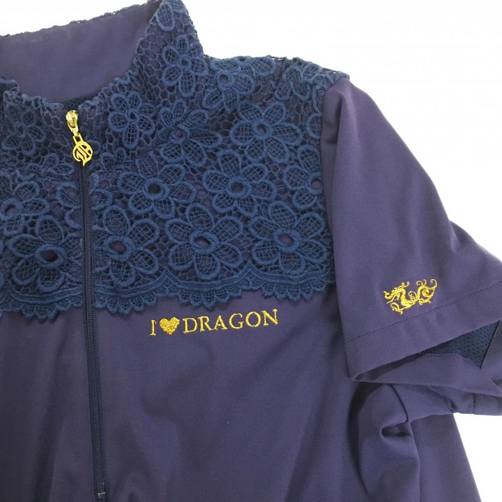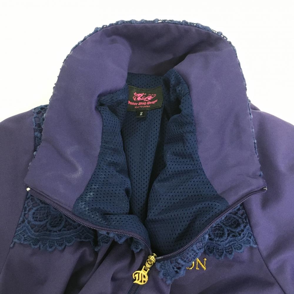ダンスウィズドラゴン 半袖ブルゾン パープル×ネイビー 上部花柄レース ハーフジップ レディース 2(M) ゴルフウェア Dance With Dragon