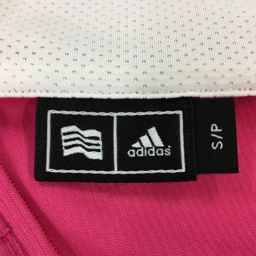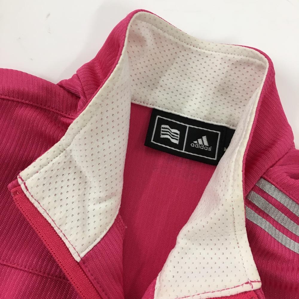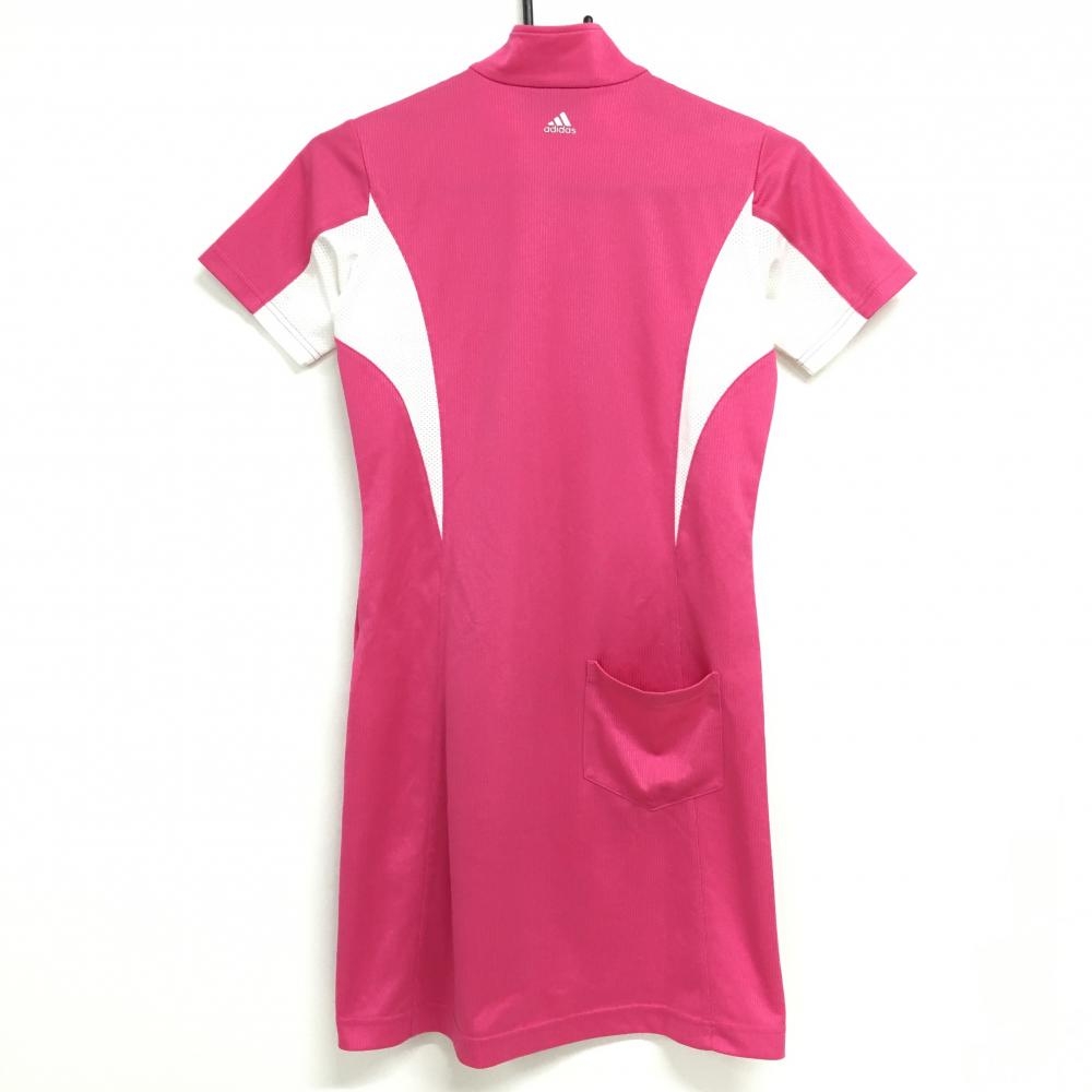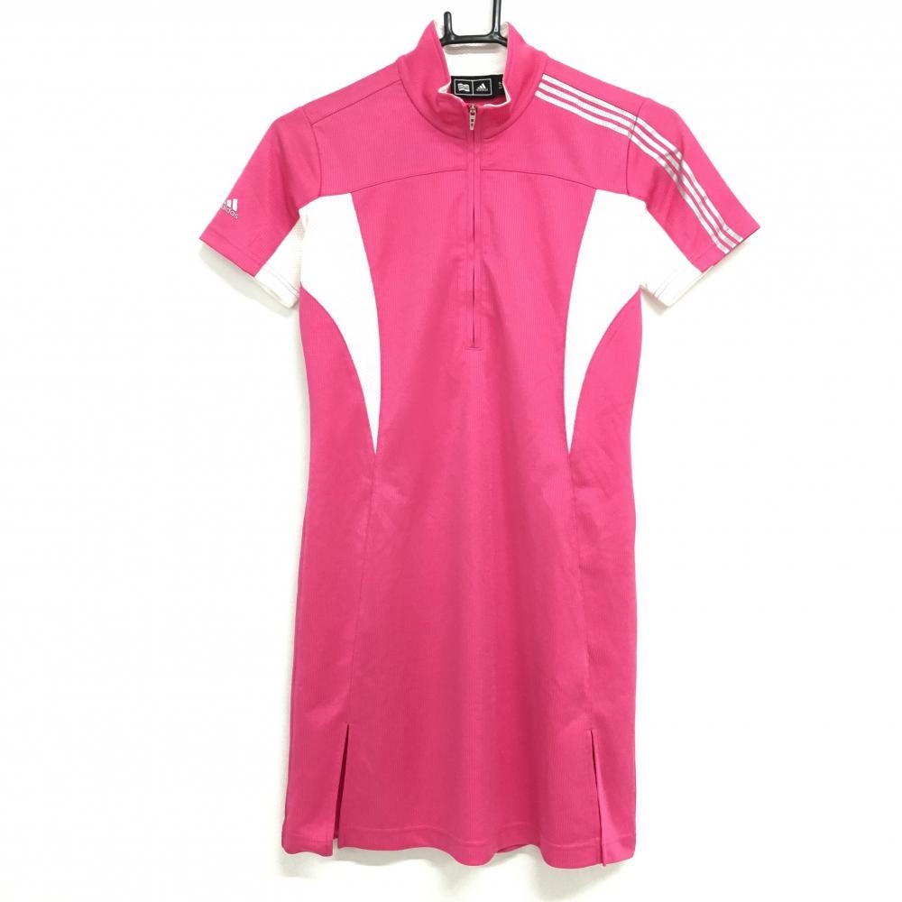 アディダス ワンピース ピンク×白 織生地 袖3ライン ハーフジップ レディース S/P ゴルフウェア adidas