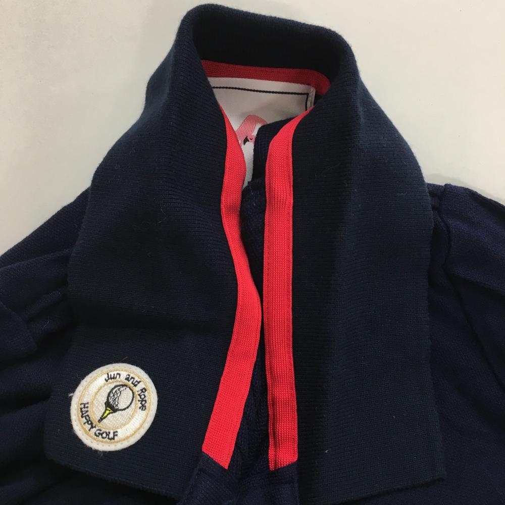 ジュンアンドロペ 長袖ポロシャツ ネイビー 襟ワッペン 胸元ロゴ レディース L ゴルフウェア JUN&ROPE