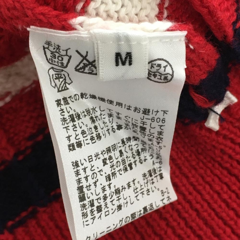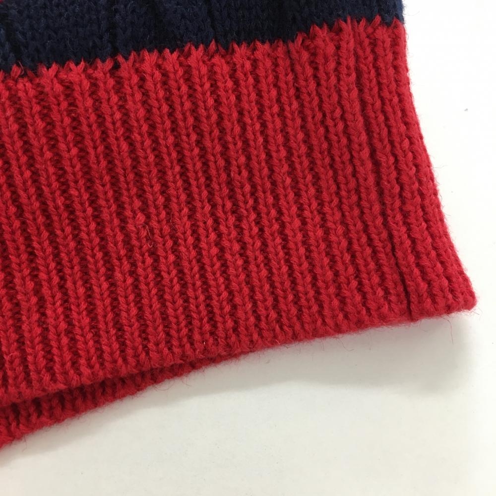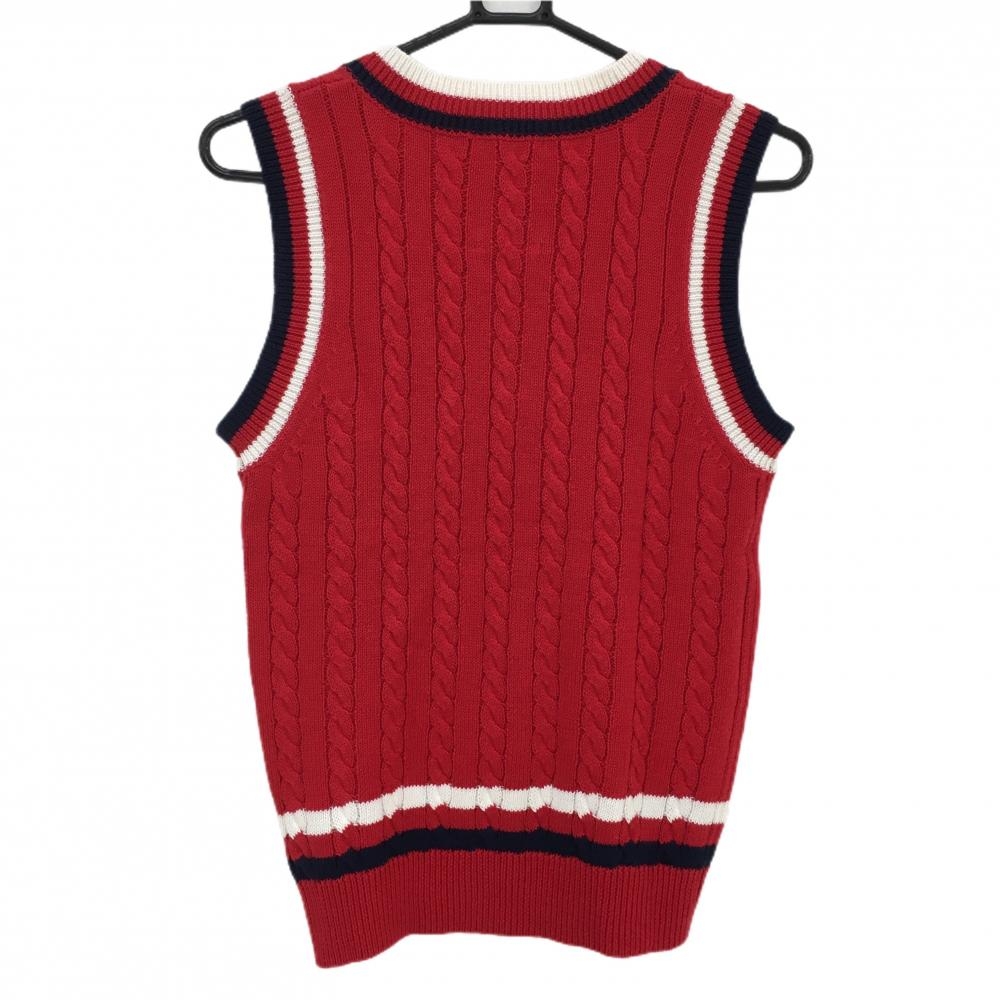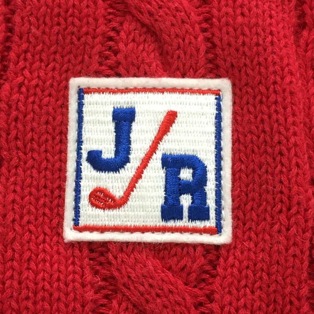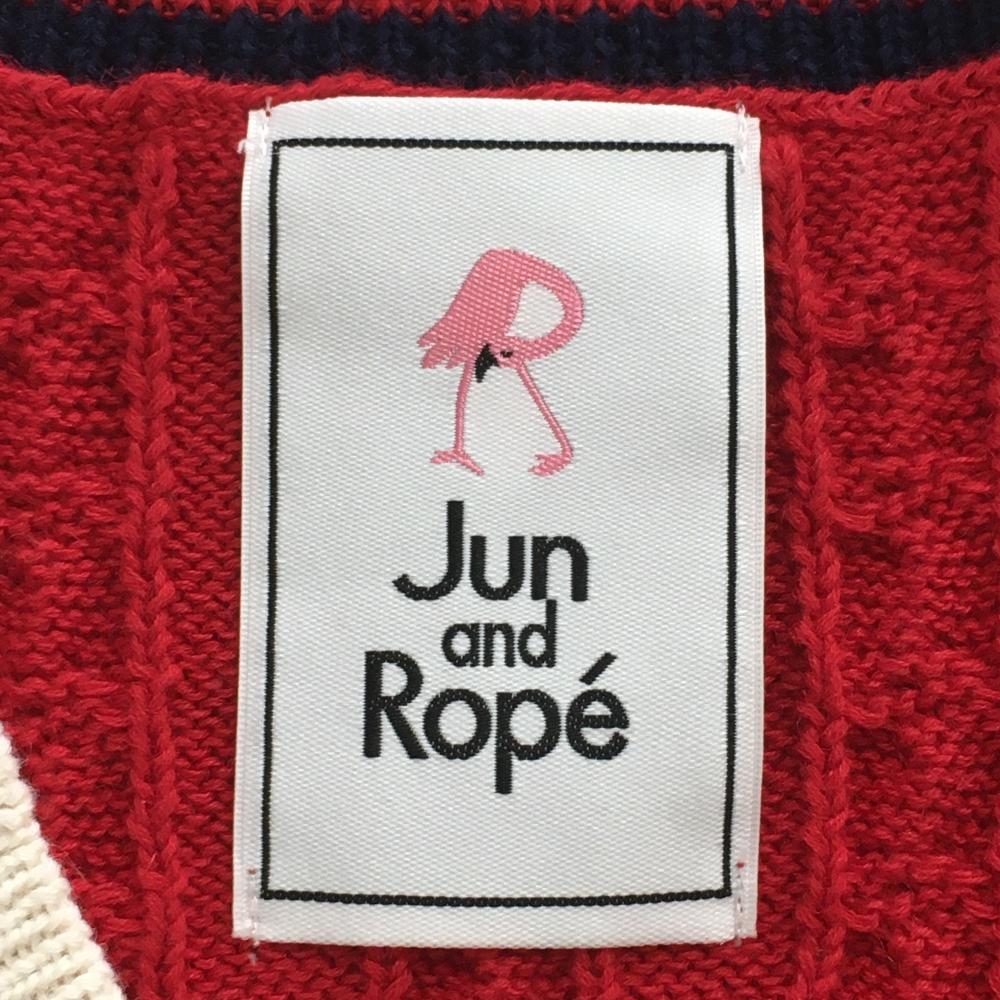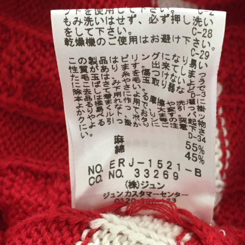 【美品】ジュンアンドロペ ニットベスト レッド×ネイビー Vネック ケーブル編み 麻混 レディース M ゴルフウェア JUN&ROPE