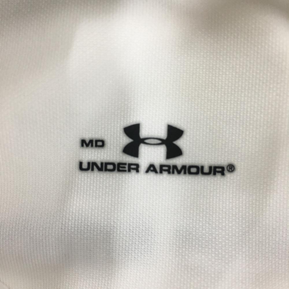 アンダーアーマー 半袖ポロシャツ 白×黒 ロゴ刺しゅう ボタンダウン レディース MD ゴルフウェア UNDER ARMOUR