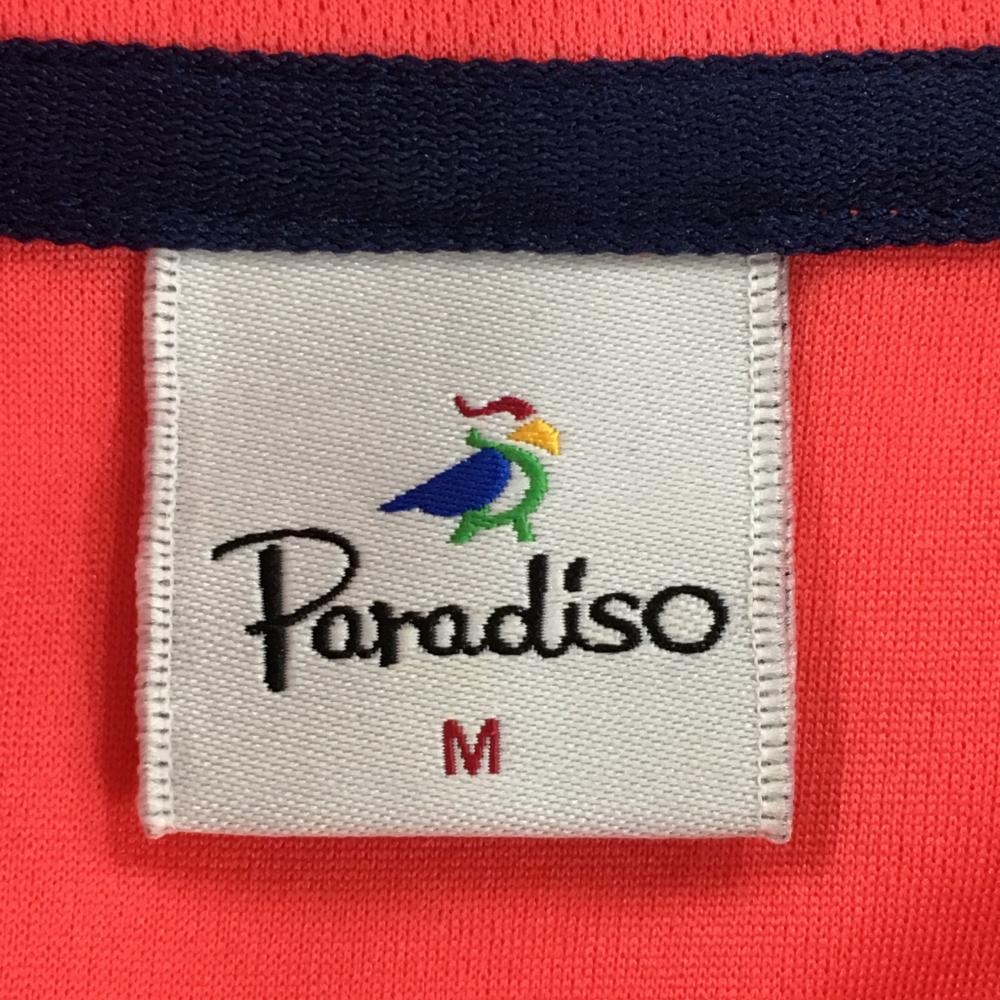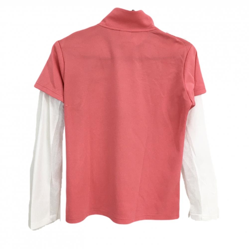 パラディーゾ 長袖ポロシャツ サーモンオレンジ×白 重ね着風 袖一部メッシュ レディース M ゴルフウェア Paradiso