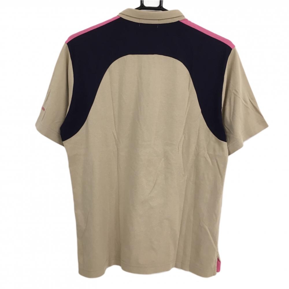 パーリーゲイツ 半袖ポロシャツ ベージュ×ネイビー×ピンク バイカラー メンズ 4(M) ゴルフウェア PEARLY GATES