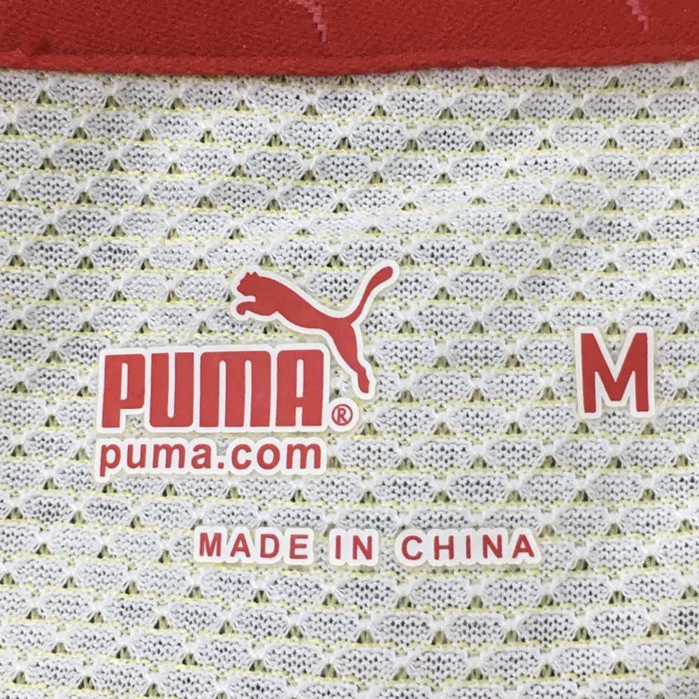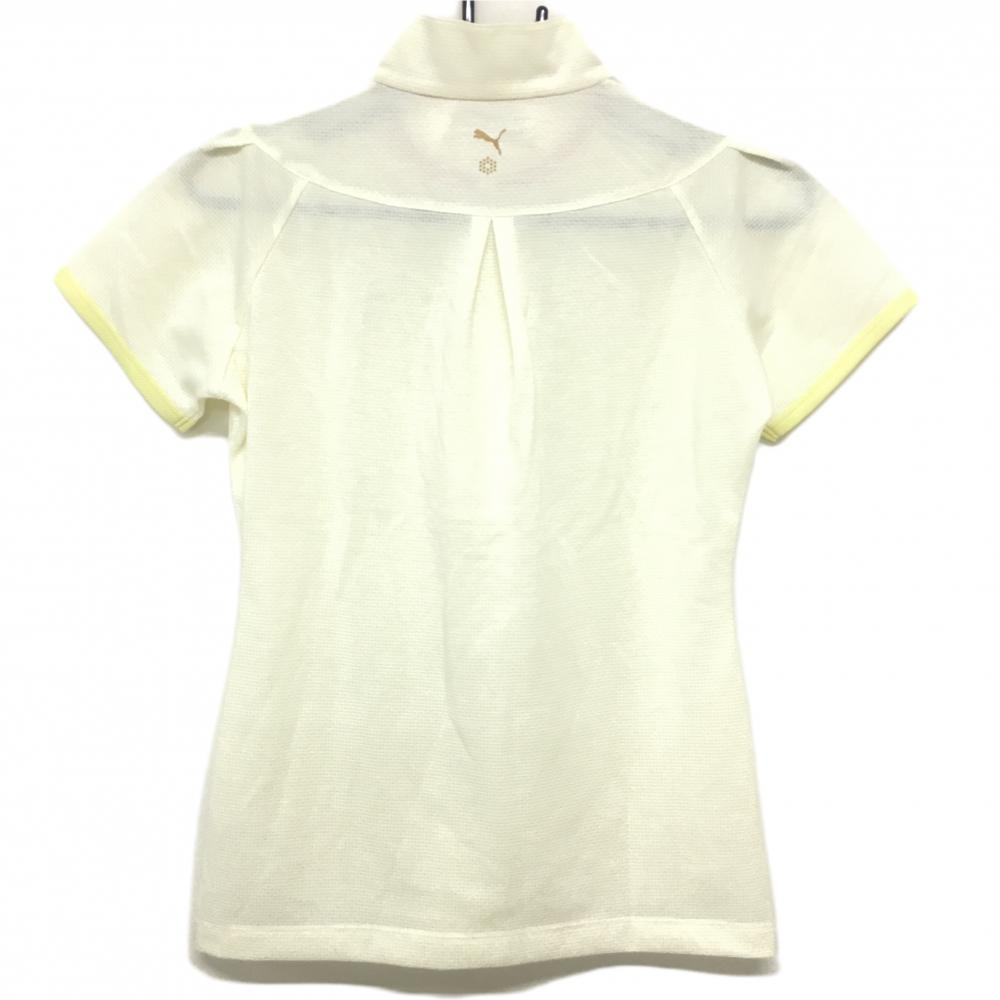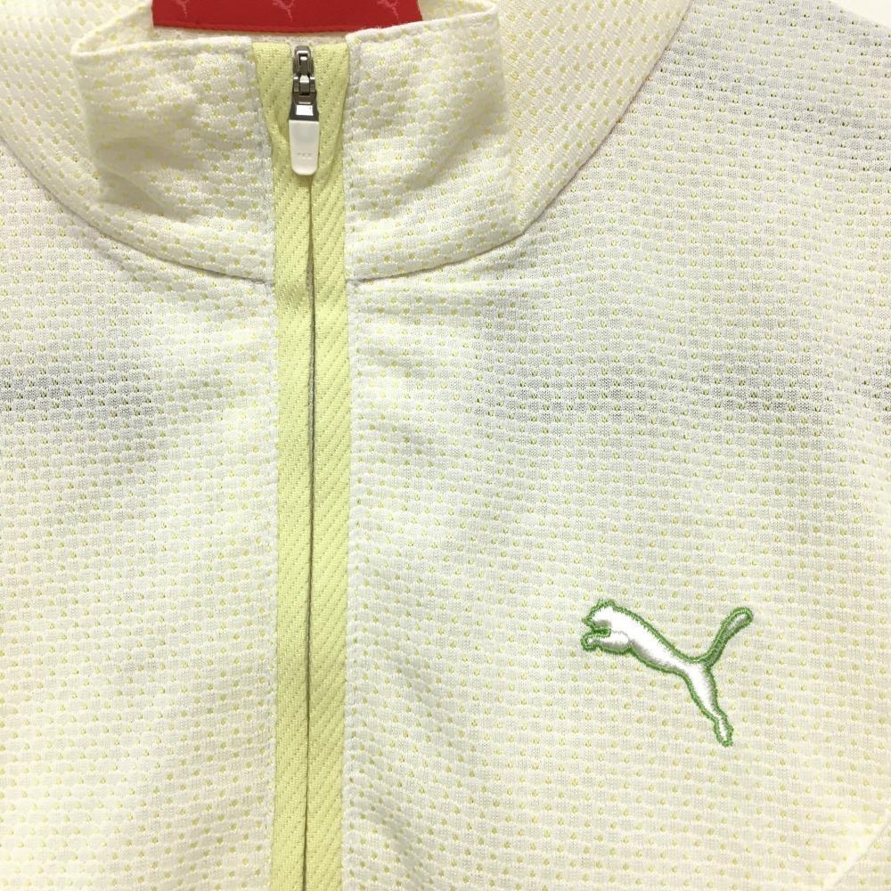【超美品】プーマ 半袖ハイネックシャツ イエロー×白 織生地 ハーフジップ レディース M ゴルフウェア PUMA