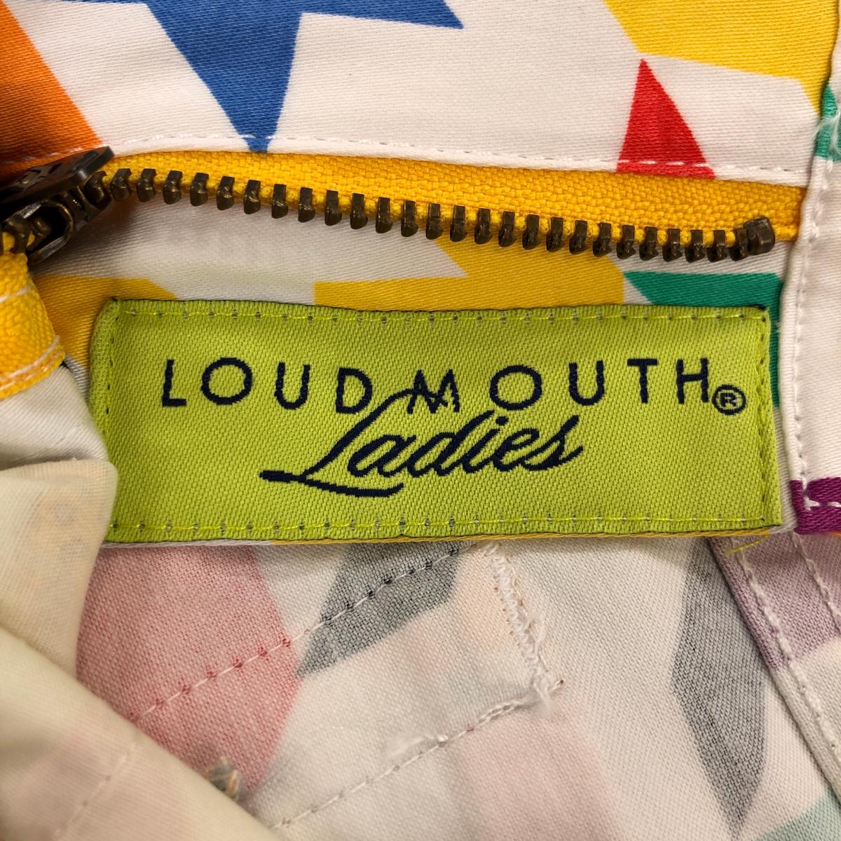 ラウドマウス 半端丈パンツ 白×マルチ ラズルダズル 千鳥格子 ロゴ刺しゅう レディース US-2 ゴルフウェア LOUDMOUTH