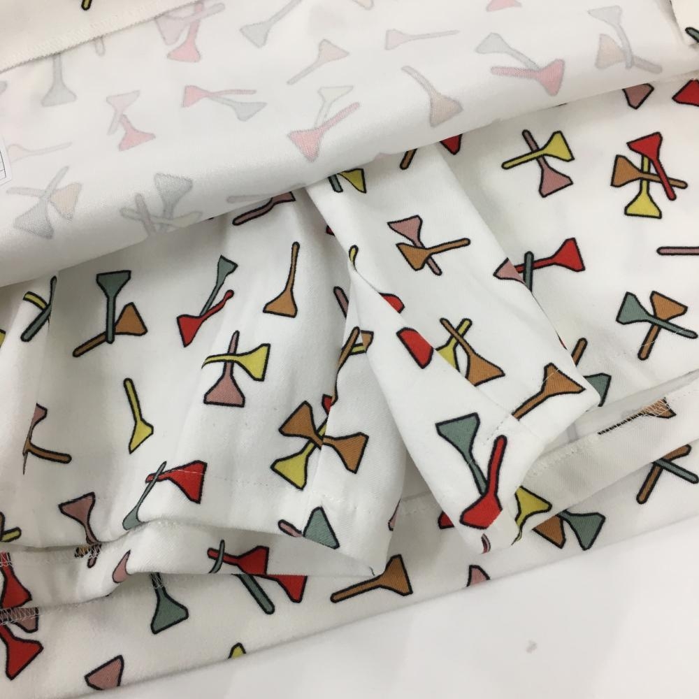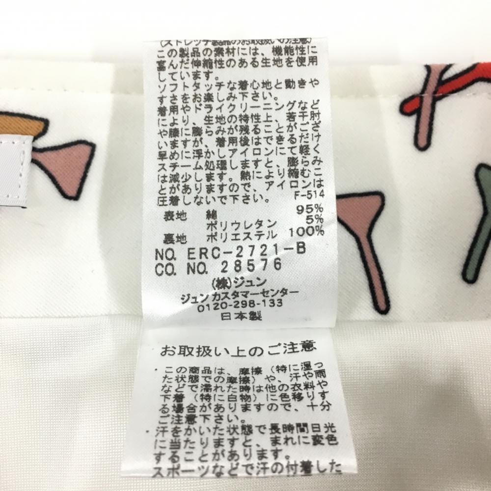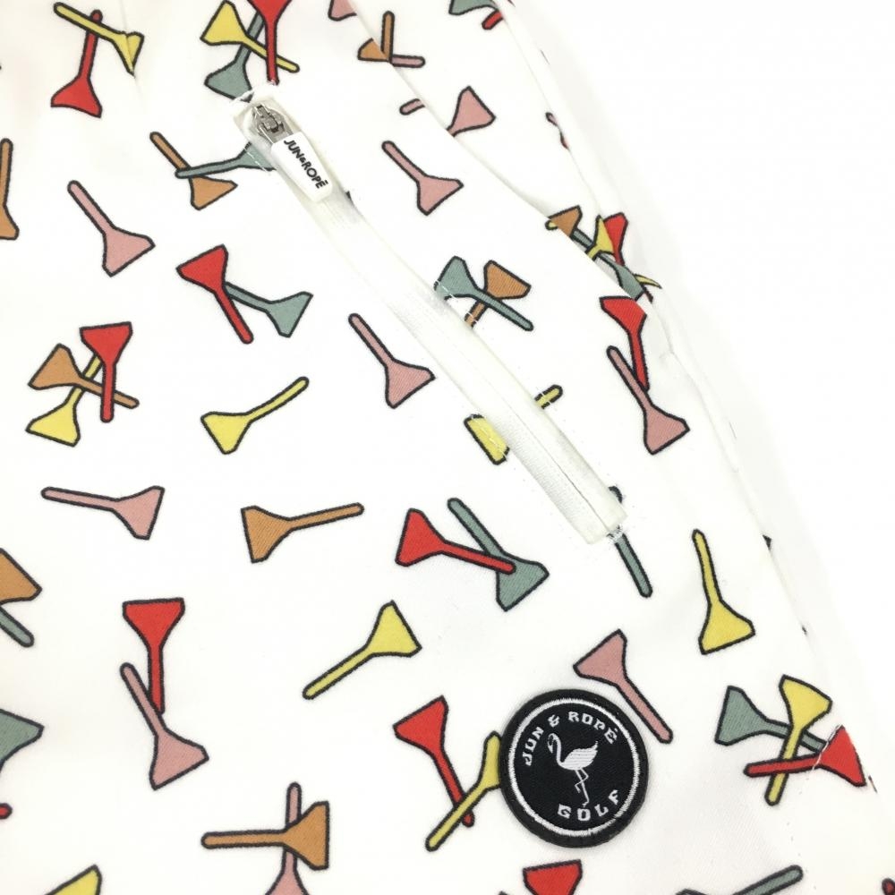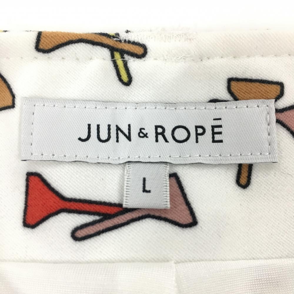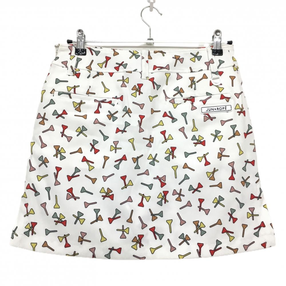 【超美品】ジュンアンドロペ スカート 白×マルチカラー 総柄 内側インナーパンツ ロゴワッペン レディース L ゴルフウェア JUN&ROPE