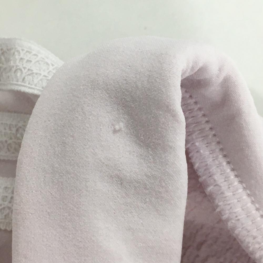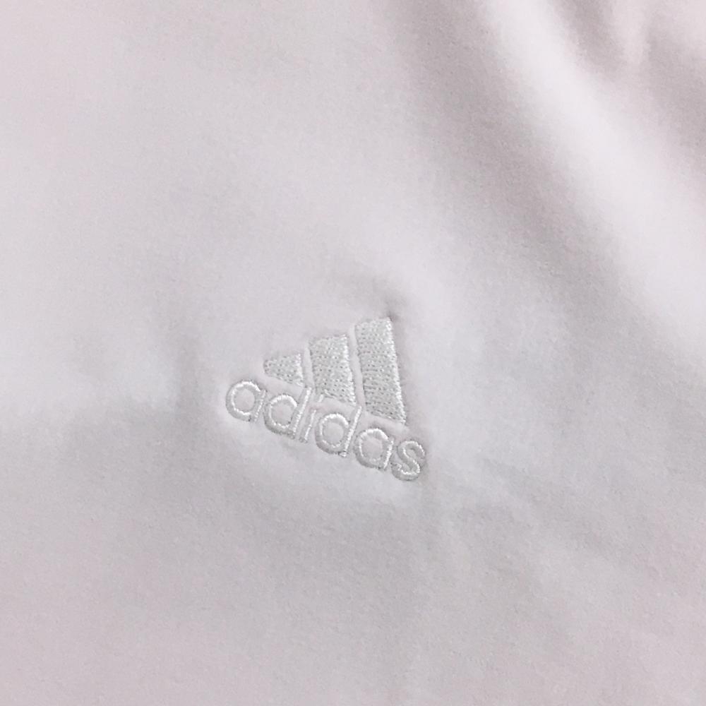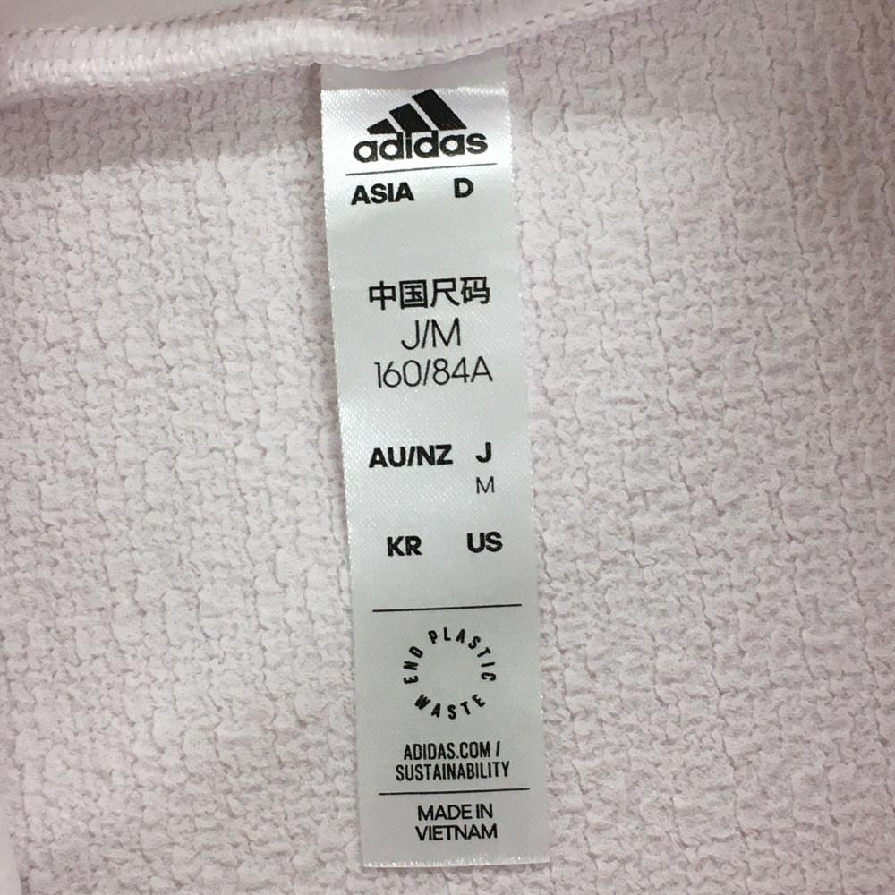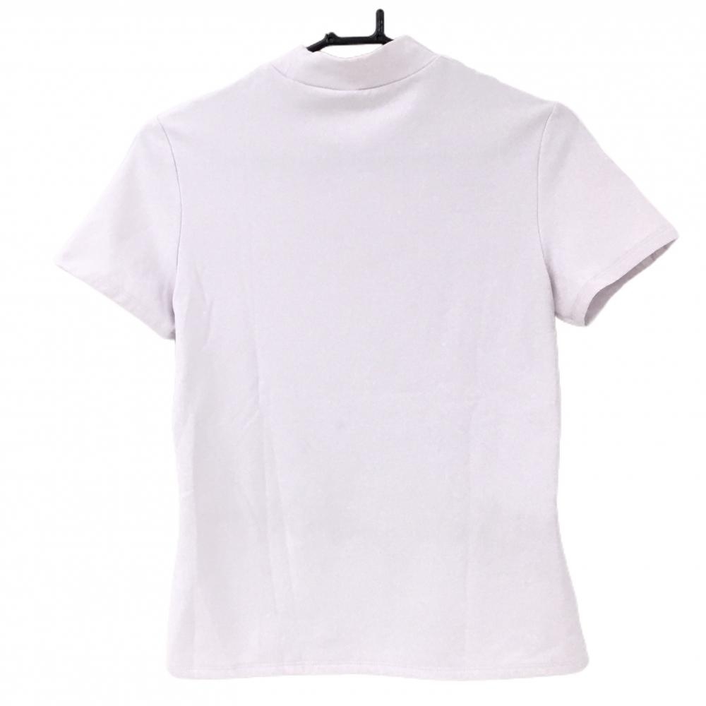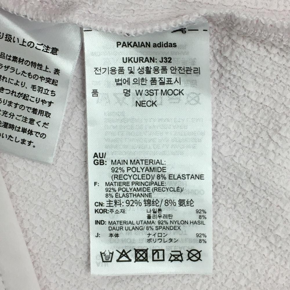 【美品】アディダス 半袖ハイネックシャツ ライトピンク×白 袖3ライン 裏凹凸生地 ストレッチ レディース S ゴルフウェア adidas
