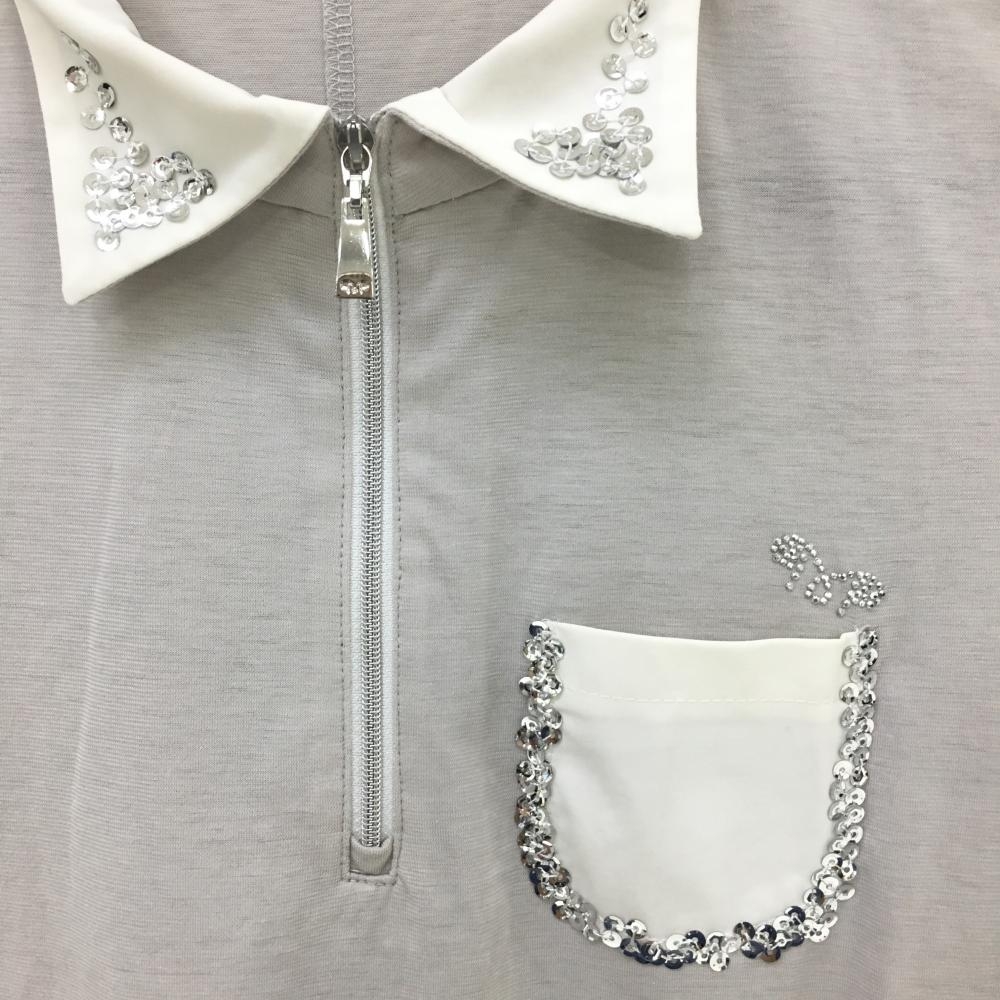 【超美品】ムニタルプ 半袖ポロシャツ ライトグレー×白 ヒールクリーク ハーフジップ レディース 42(L) ゴルフウェア Heal Creek