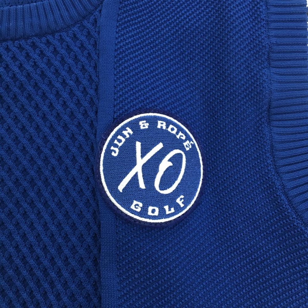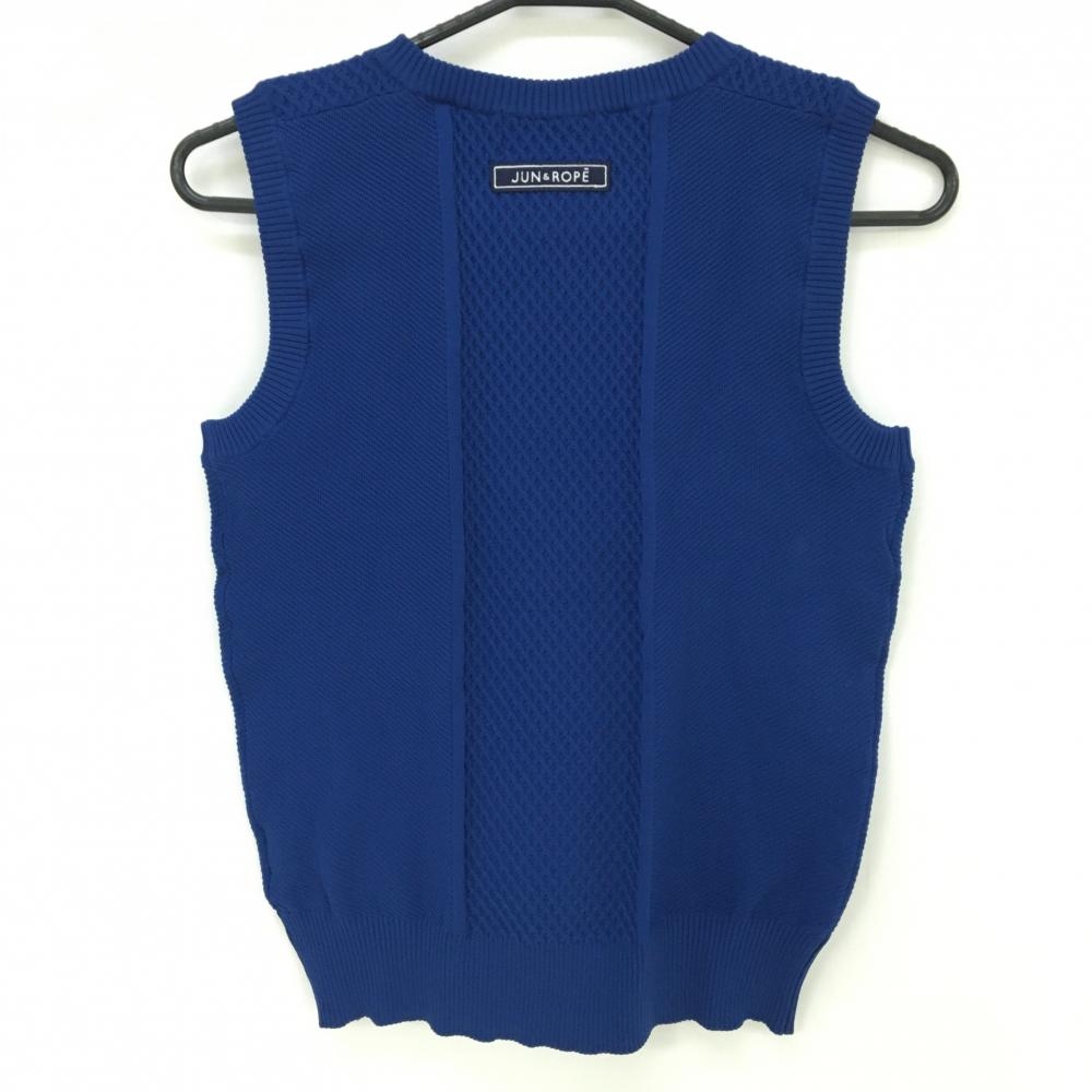 ジュンアンドロペ ニットベスト ブルー ロゴワッペン ポリエステル100% レディース L ゴルフウェア JUN&ROPE