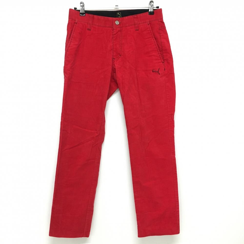 【美品】プーマ コーデュロイパンツ レッド ロゴ刺しゅう メンズ 76 ゴルフウェア PUMA