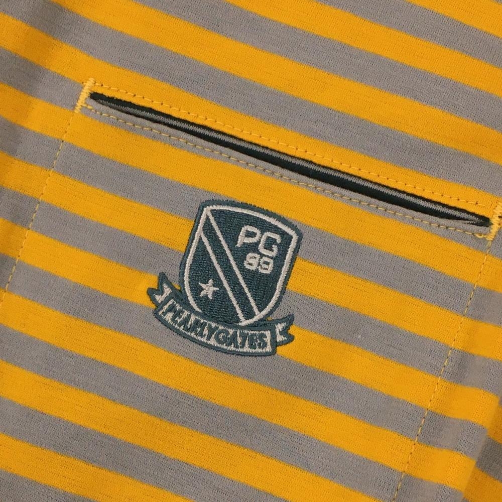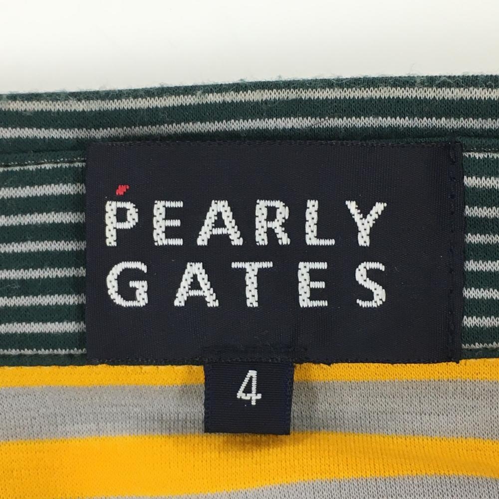 【超美品】パーリーゲイツ 半袖ポロシャツ オレンジ×グレー ボーダー 胸ポケット メンズ 4(M) ゴルフウェア PEARLY GATES