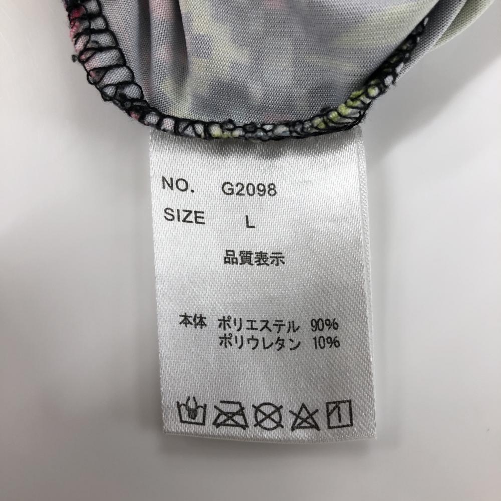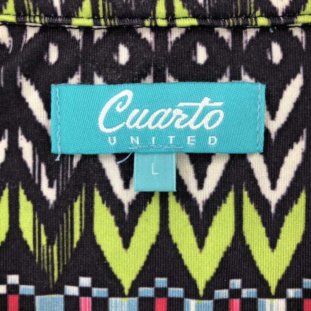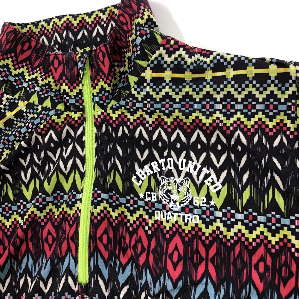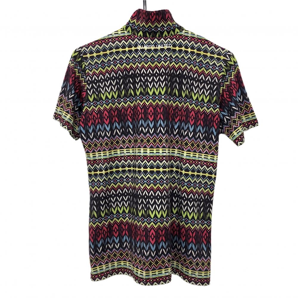 【超美品】クアルトユナイテッド 半袖ハイネックシャツ ネイビー×マルチカラー 総柄 レディース L ゴルフウェア CUARTO UNITED