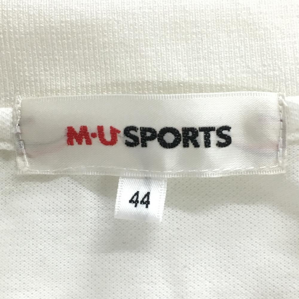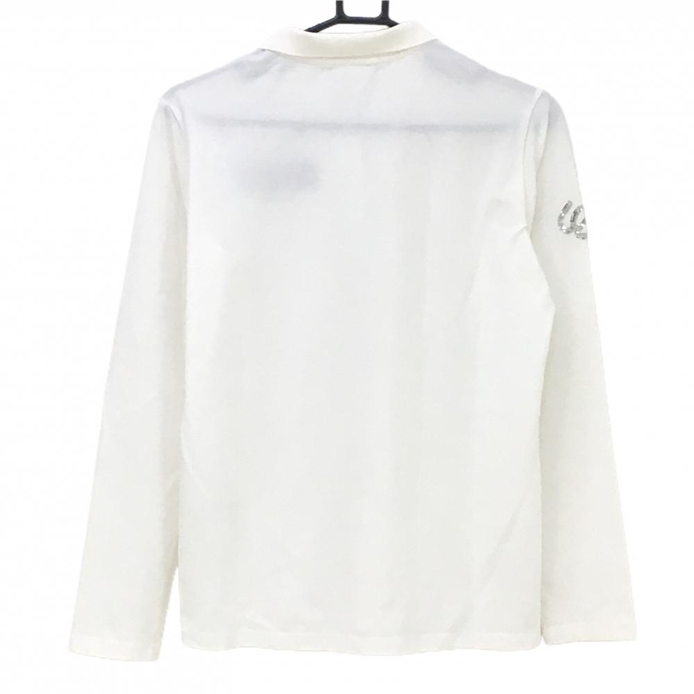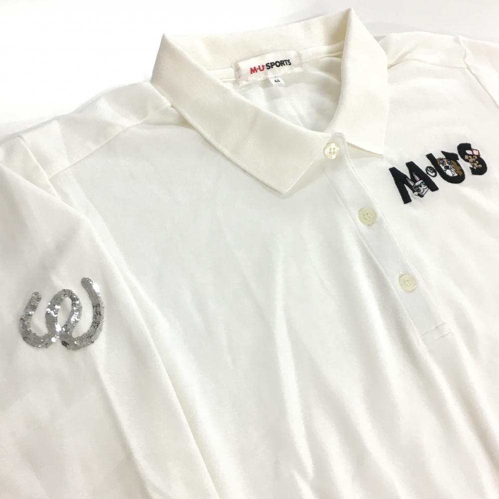 【美品】MUスポーツ 長袖ポロシャツ 白 袖スパンコール 胸刺しゅう イヌ レディース 44(XL) ゴルフウェア M・U SPORTS