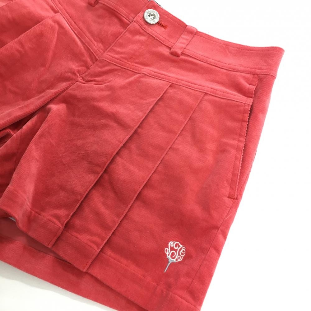 【超美品】サマンサタバサ UNDER25 コーデュロイショートパンツ レッド 一部プリーツ レディース ゴルフウェア Samantha Thavasa