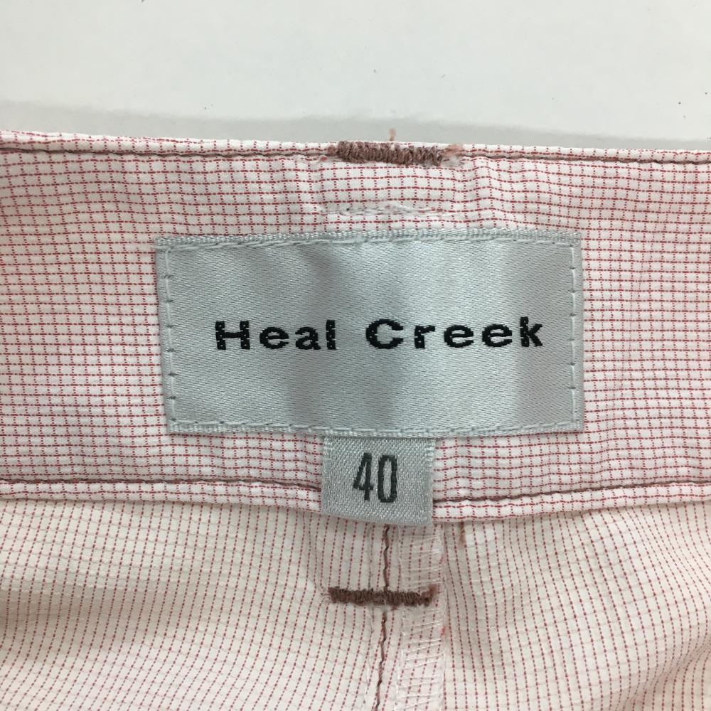 【超美品】ヒールクリーク パンツ レッド×白 織生地 サイドライン レディース 40(M) ゴルフウェア Heal Creek