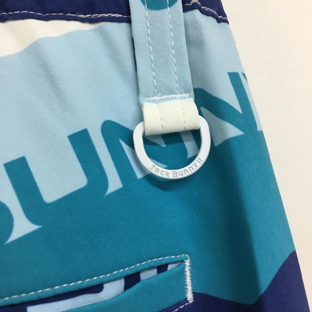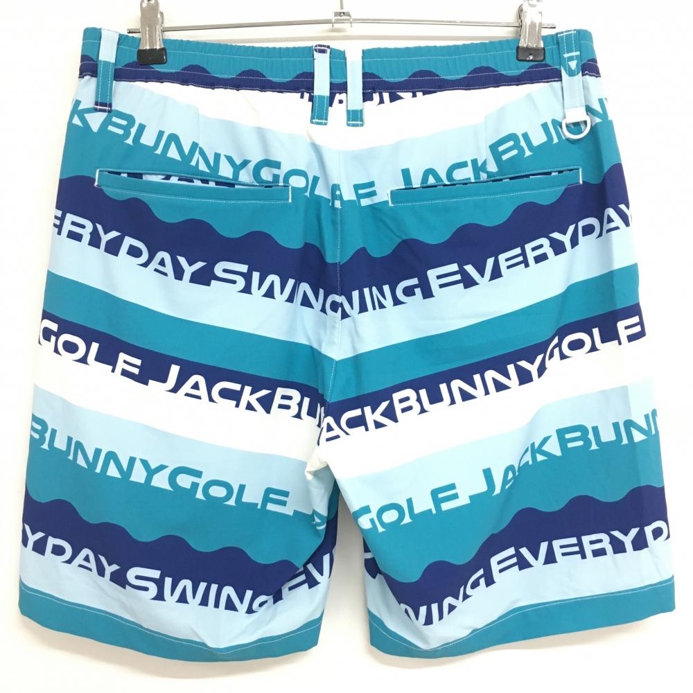 【美品】ジャックバニー ハーフパンツ ブルー×グリーン 総柄×ボーダー調 メンズ 5(L) ゴルフウェア 2022年モデル Jack Bunny