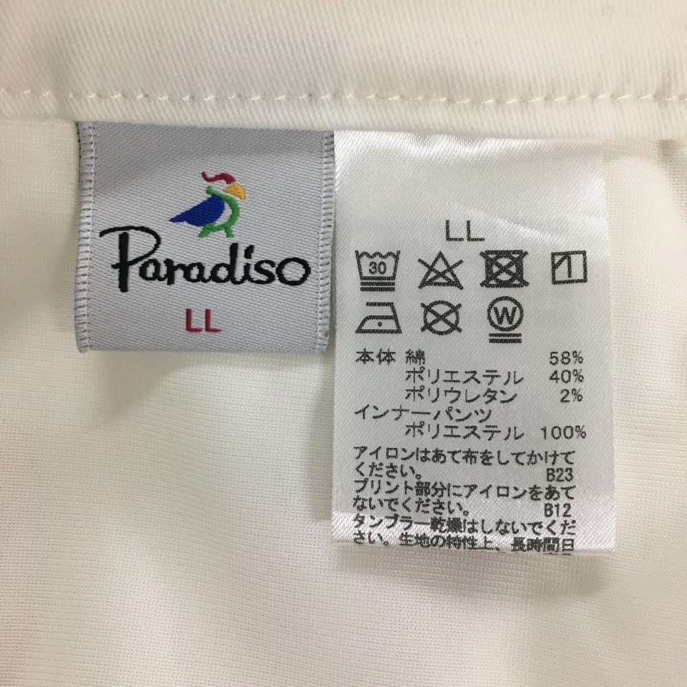 【新品】パラディーゾ スカート 白 内側インナーパンツ 後ビッグプリント レディース LL ゴルフウェア Paradiso