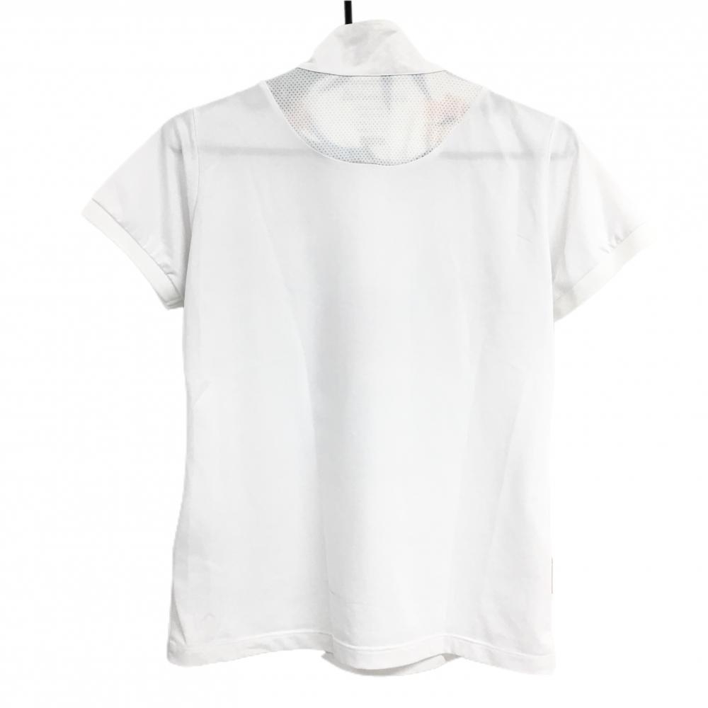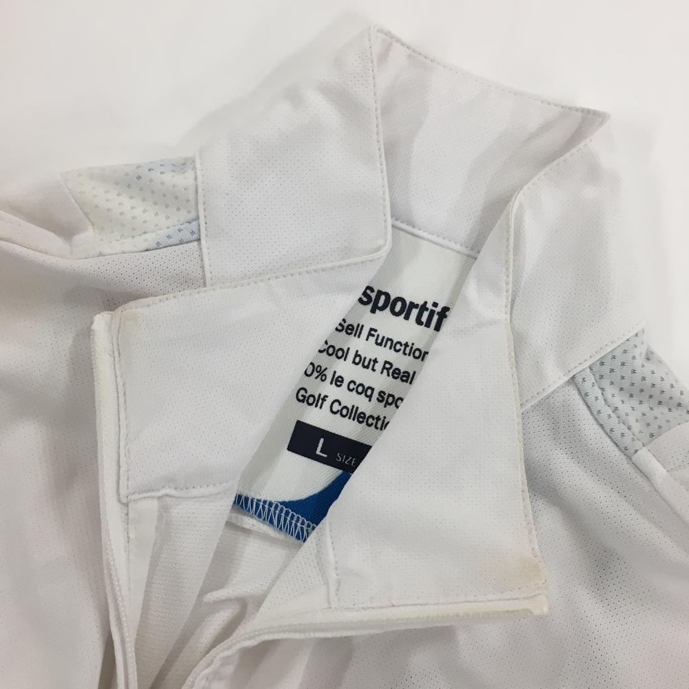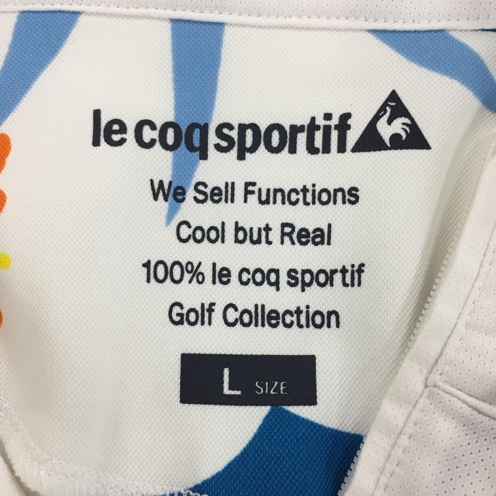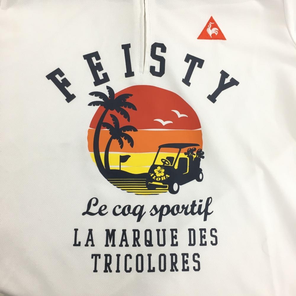 ルコック 半袖ハイネックシャツ 白 ロゴ・夕暮れプリント 背面一部メッシュ ハーフジップ レディース L ゴルフウェア le coq sportif