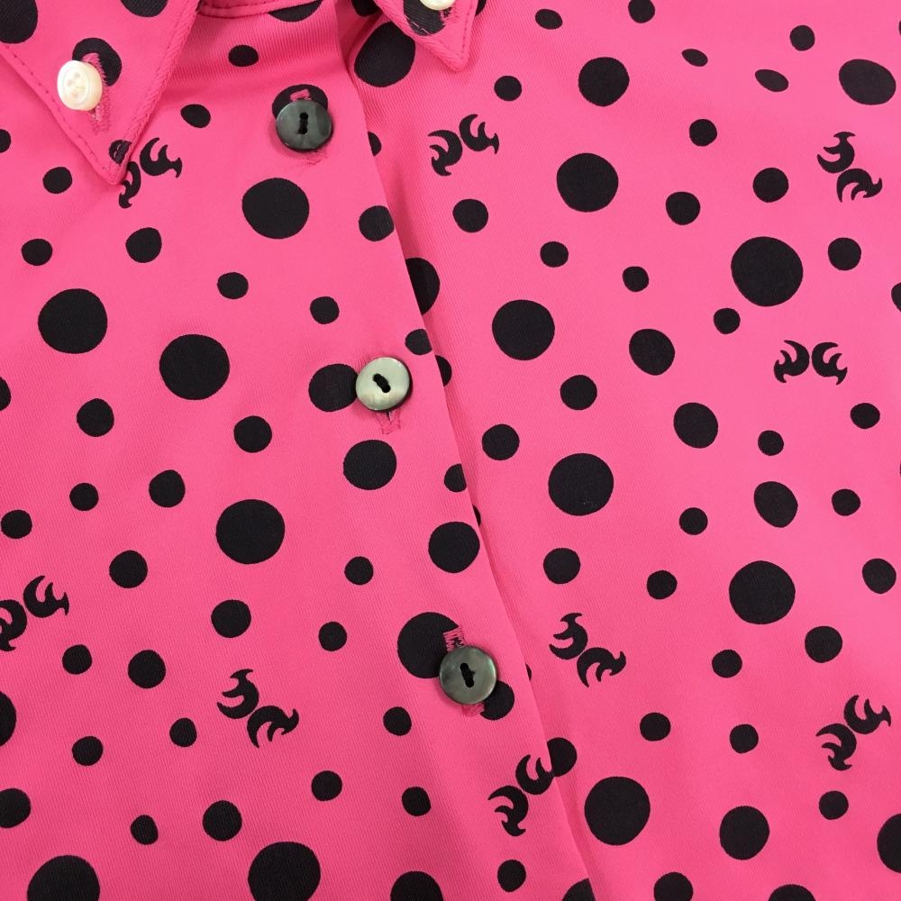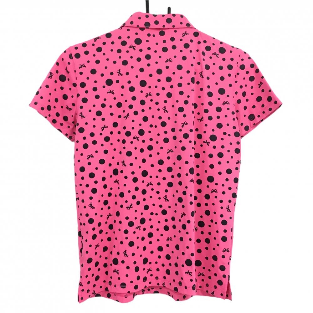 【美品】マイノリティ コレクション 半袖ポロシャツ ピンク×黒 ドット ボタンダウン レディース F ゴルフウェア Minority Collection