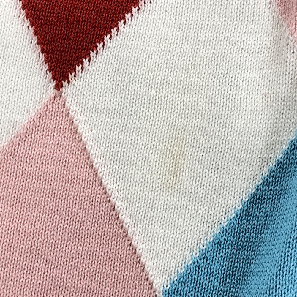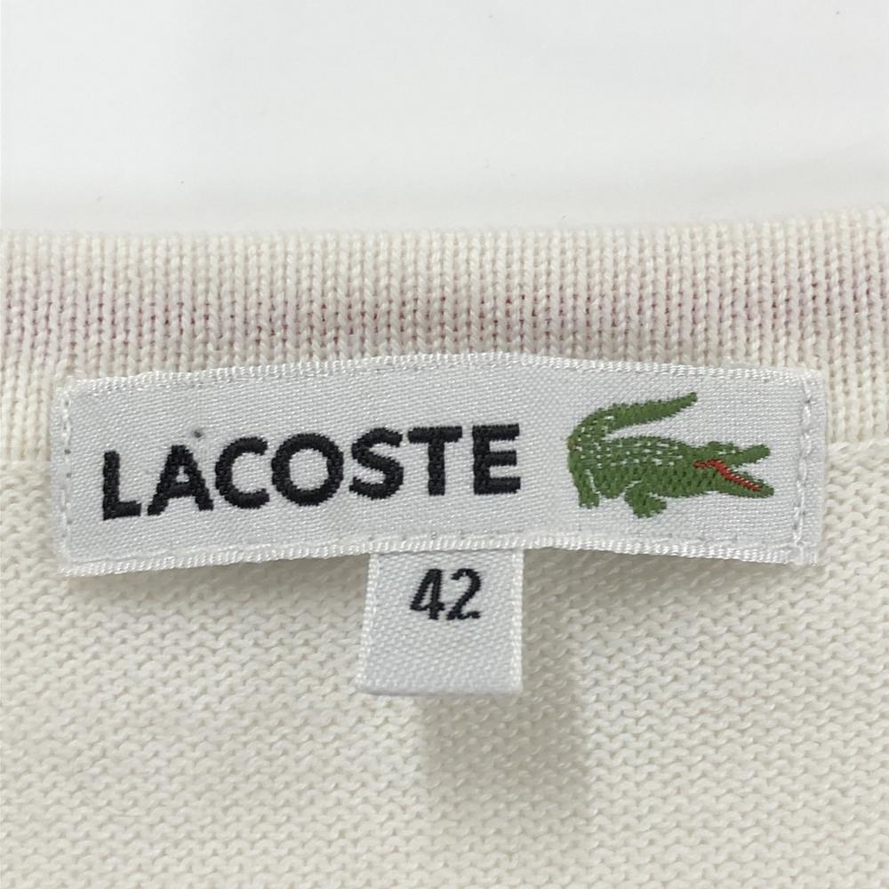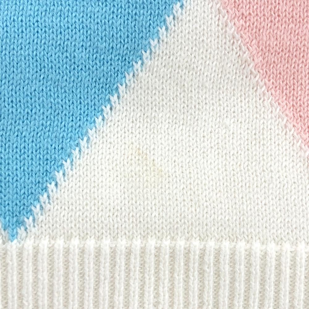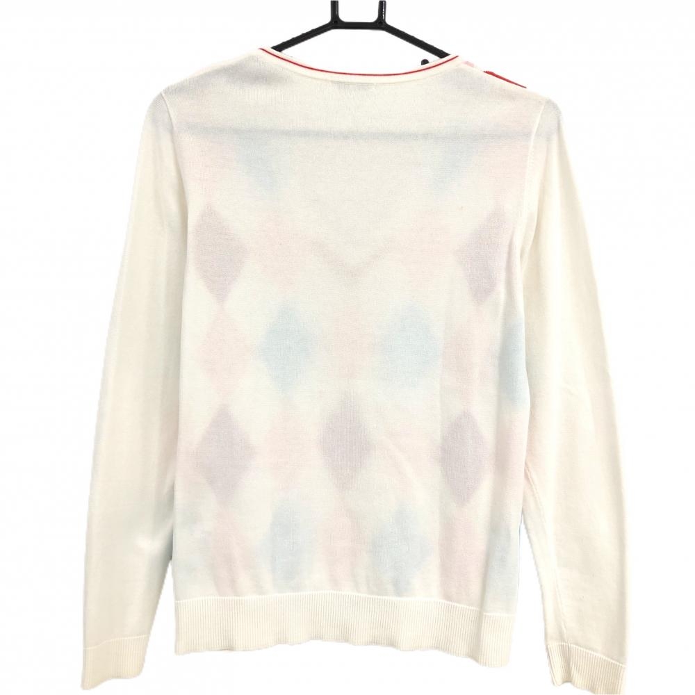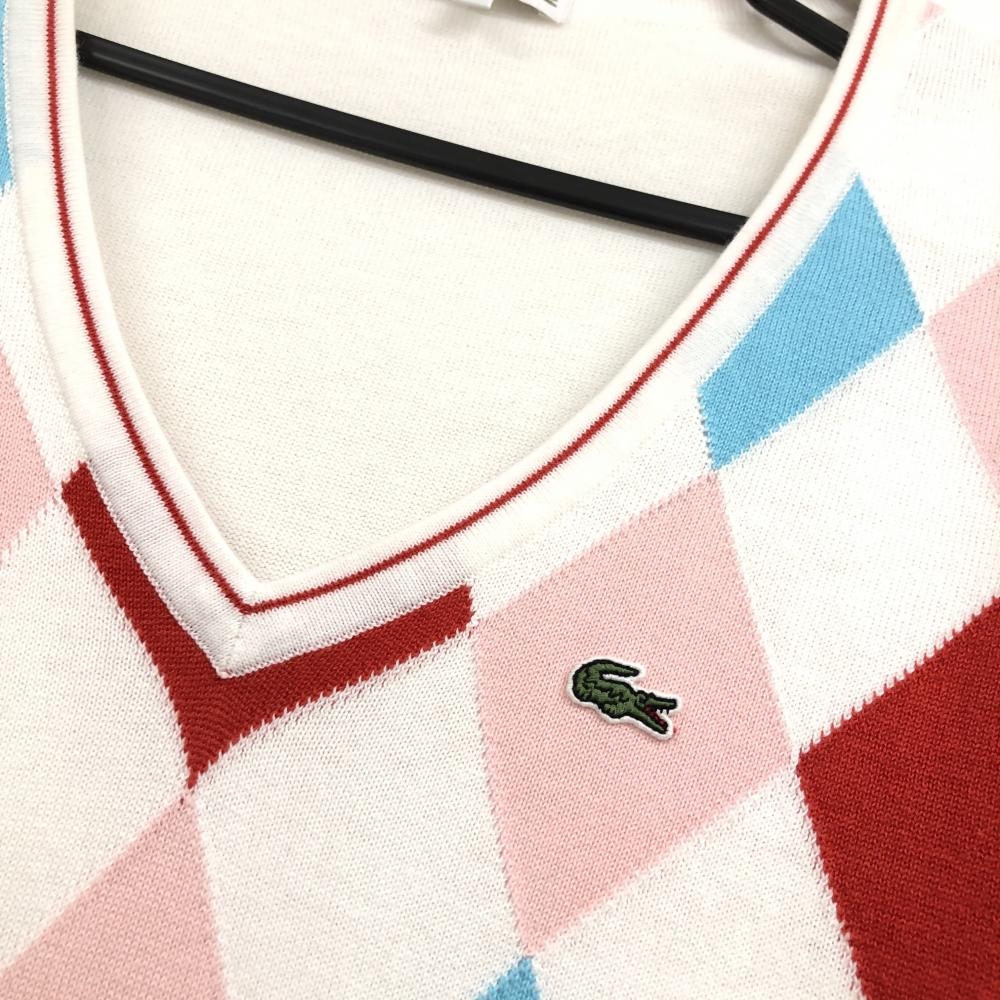 ラコステ セーター 白×ピンク×ライトブルー Vネック ダイヤ柄 ニット レディース 42 ゴルフウェア LACOSTE