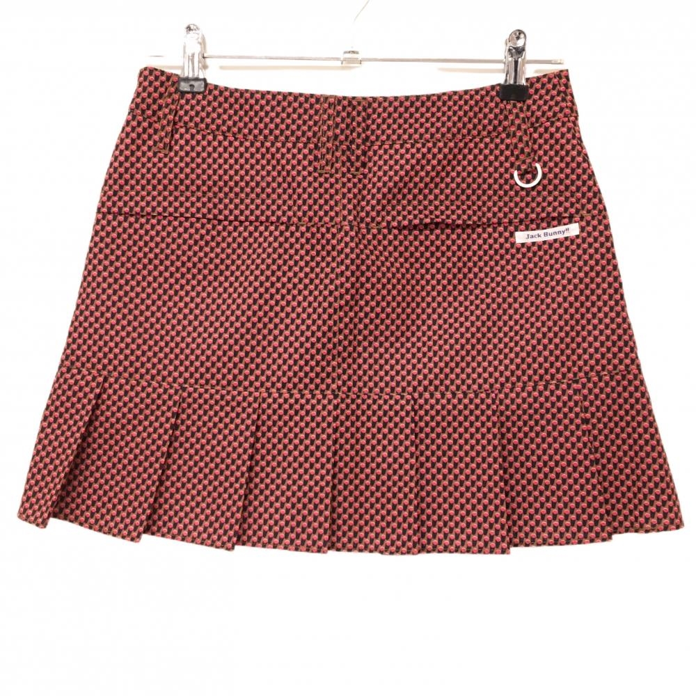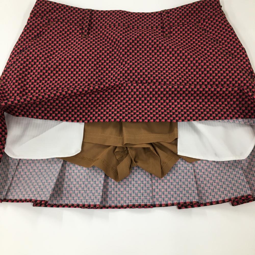 【超美品】ジャックバニー スカート ブラウン×ピンク 総柄 背面裾プリーツ 内側インナーパンツ レディース 0(S) ゴルフウェア Jack Bunny