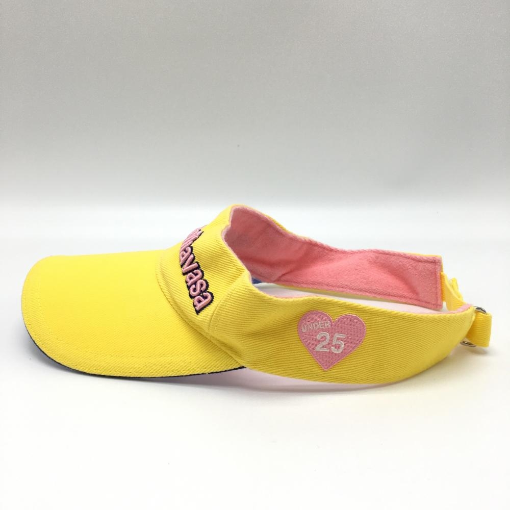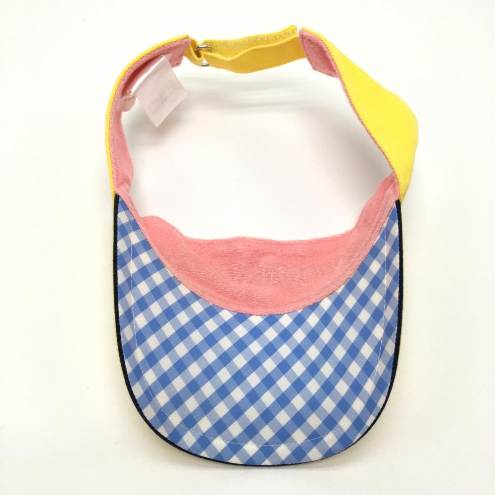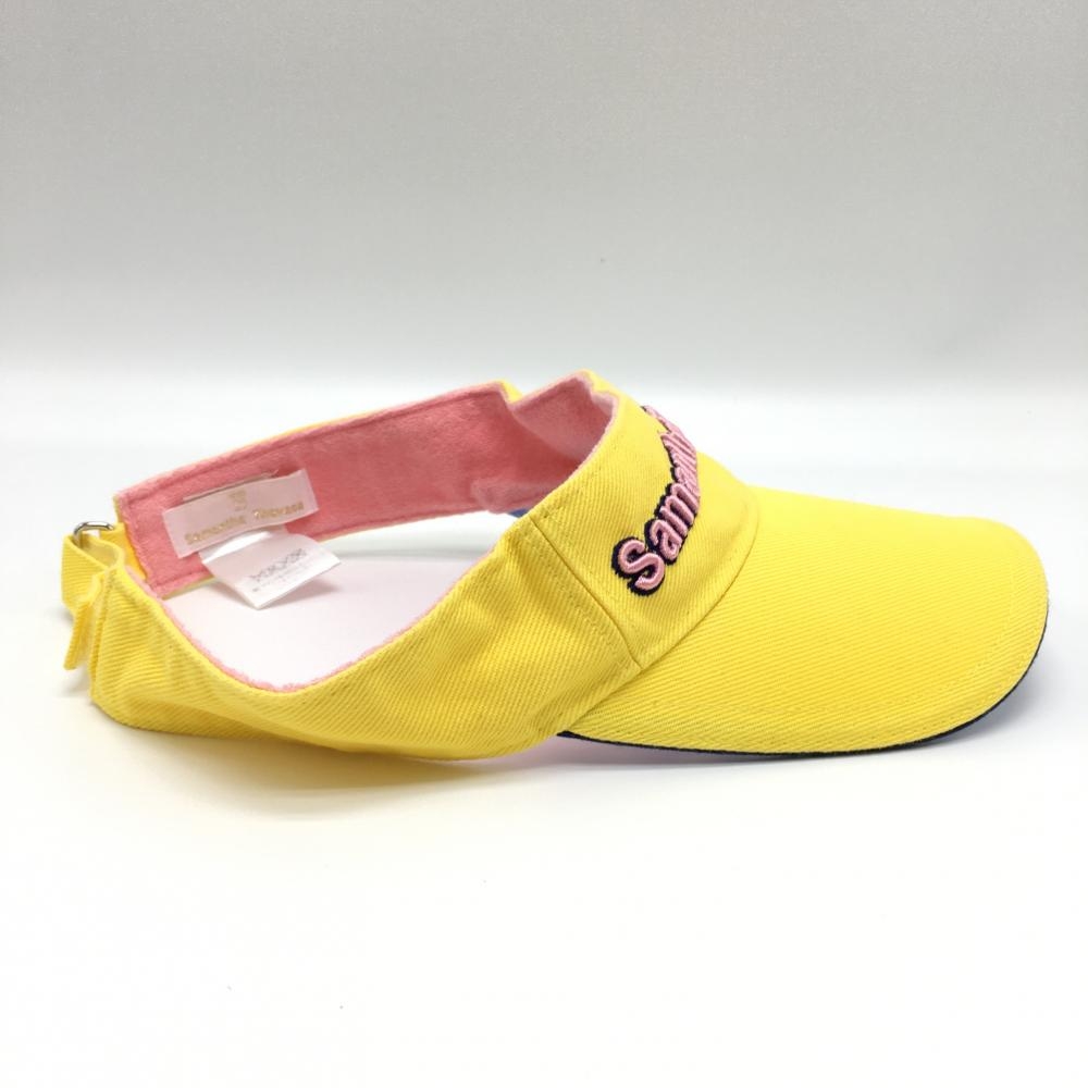 サマンサタバサ UNDER25 サンバイザー イエロー×ピンク 立体ロゴ刺しゅう つば裏チェック レディース F ゴルフウェア Samantha Thavasa