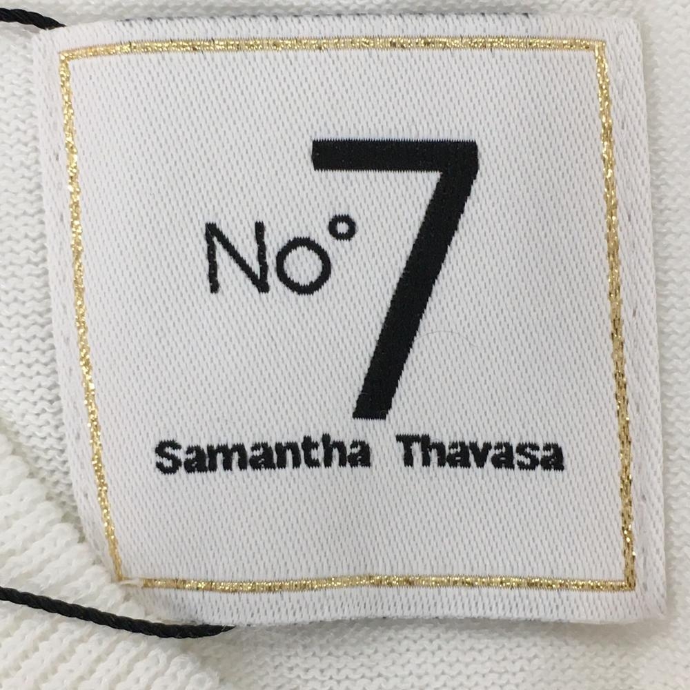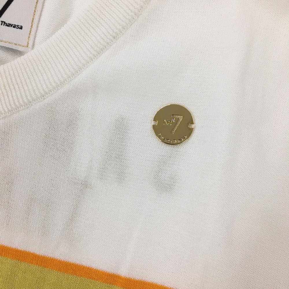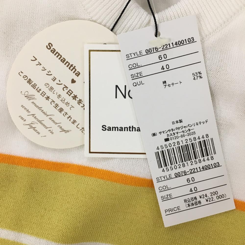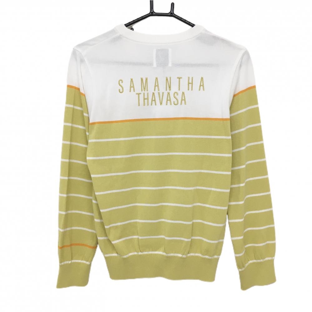 【新品】サマンサタバサ No.7 セーター 白×イエローベージュ 下部ボーダー Vネック レディース 40(L) ゴルフウェア Samantha Thavasa
