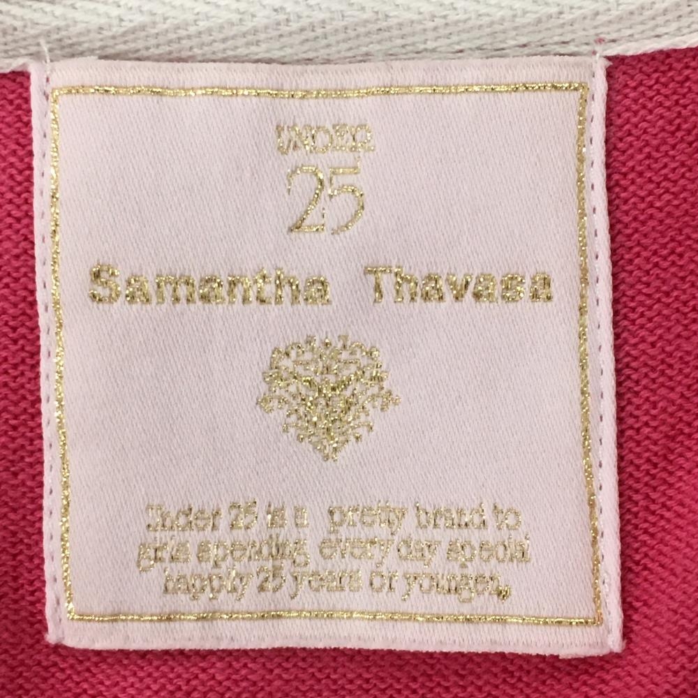 サマンサタバサ UNDER25 ニットカーディガン ピンク×白 ベア刺しゅう レディース M ゴルフウェア Samantha Thavasa