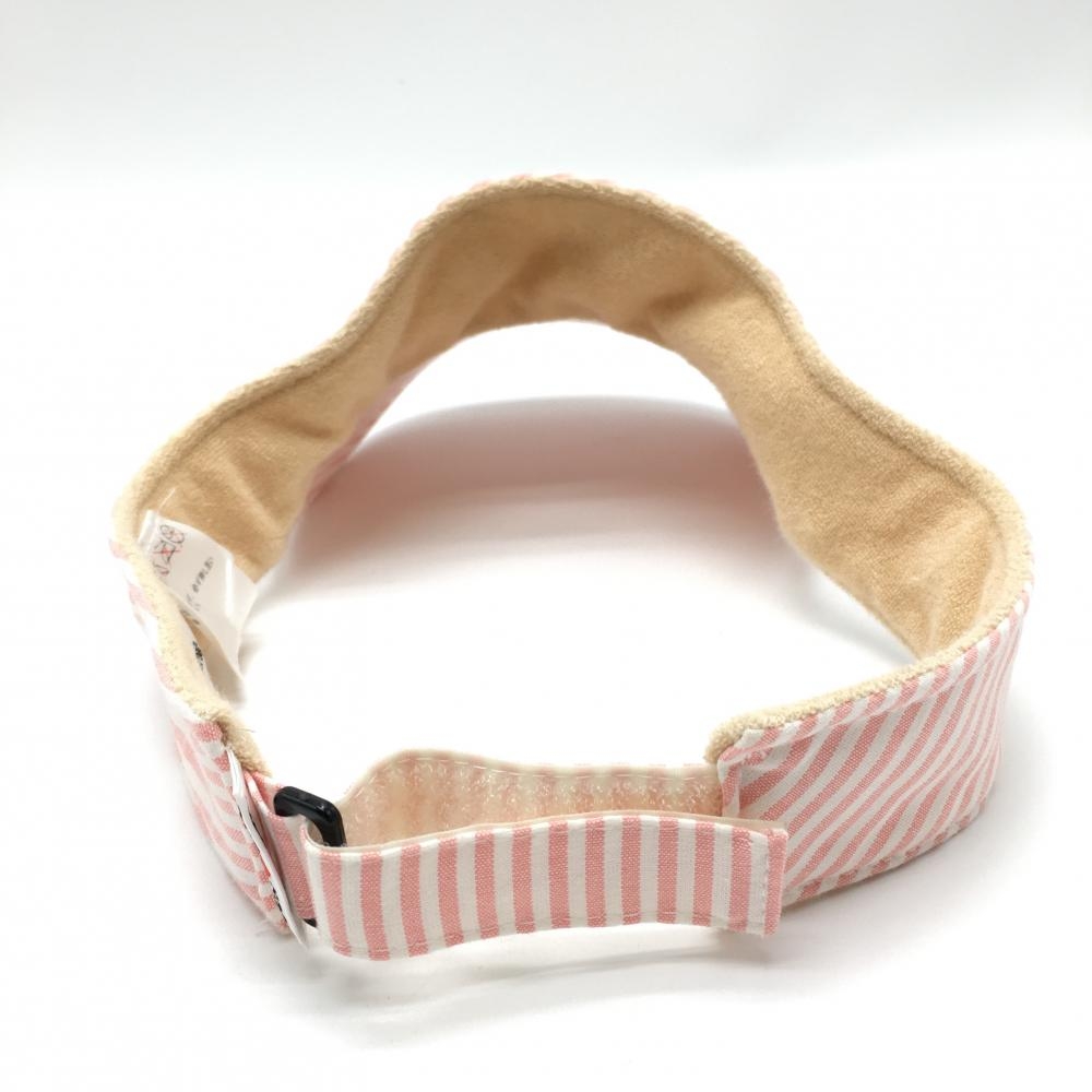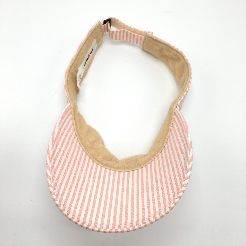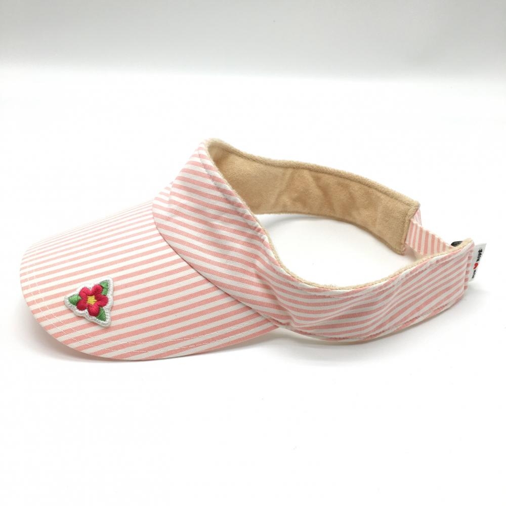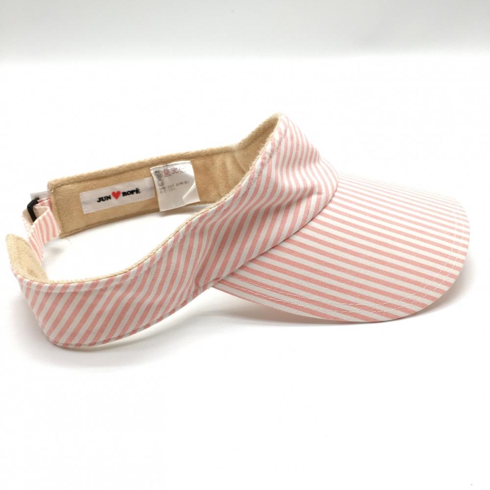 【美品】ジュンアンドロペ サンバイザー ピンク×白 ストライプ柄 花ワッペン 内側パイル地 ゴルフウェア JUN&ROPE