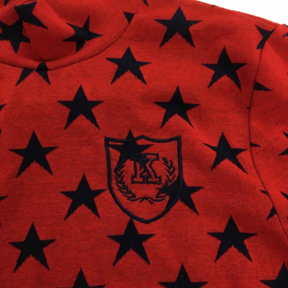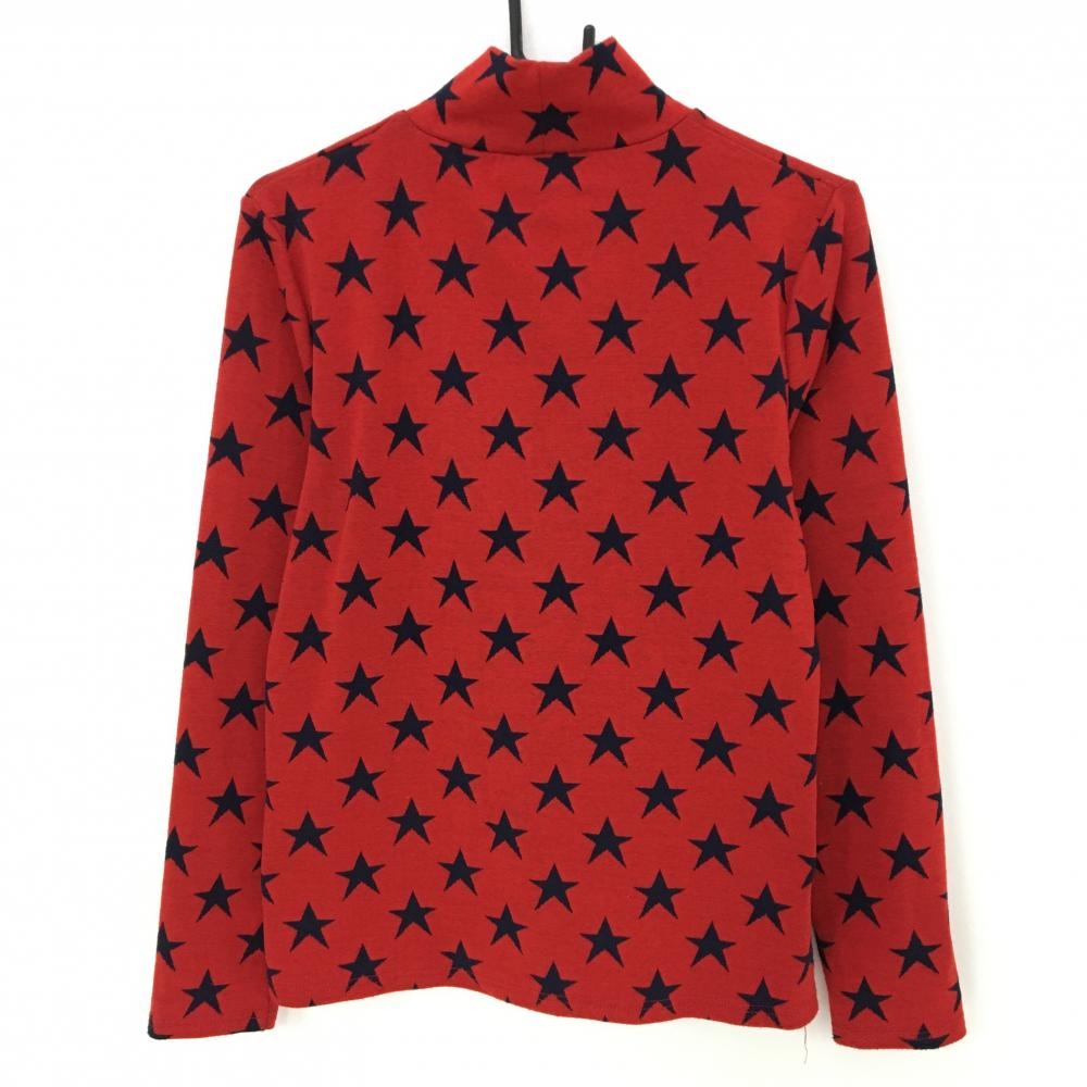 【美品】キスオンザグリーン 長袖ハイネックシャツ レッド×ネイビー 星柄 レディース 3(L) ゴルフウェア kiss on the green