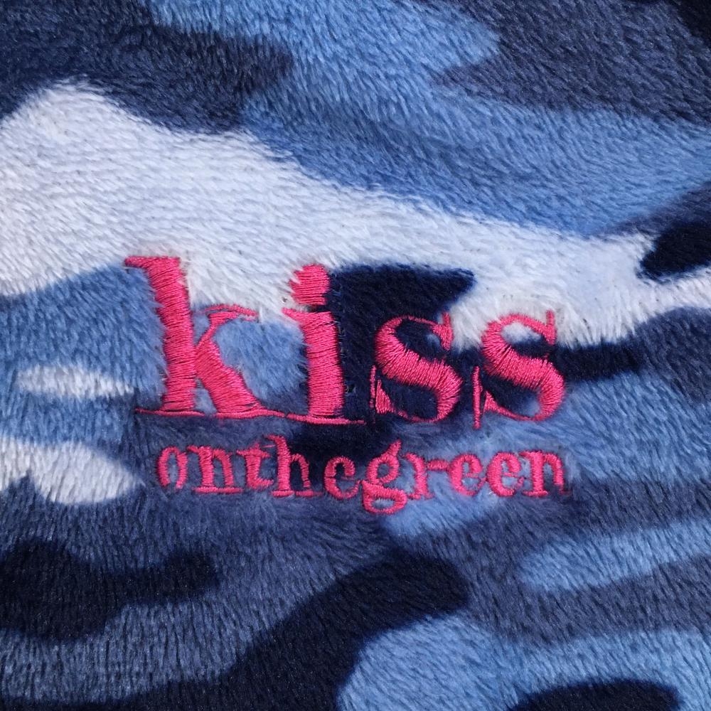キスオンザグリーン ボアジャケット ネイビー×ライトブルー 迷彩 カモフラ フリース レディース 2(M) ゴルフウェア kiss on the green
