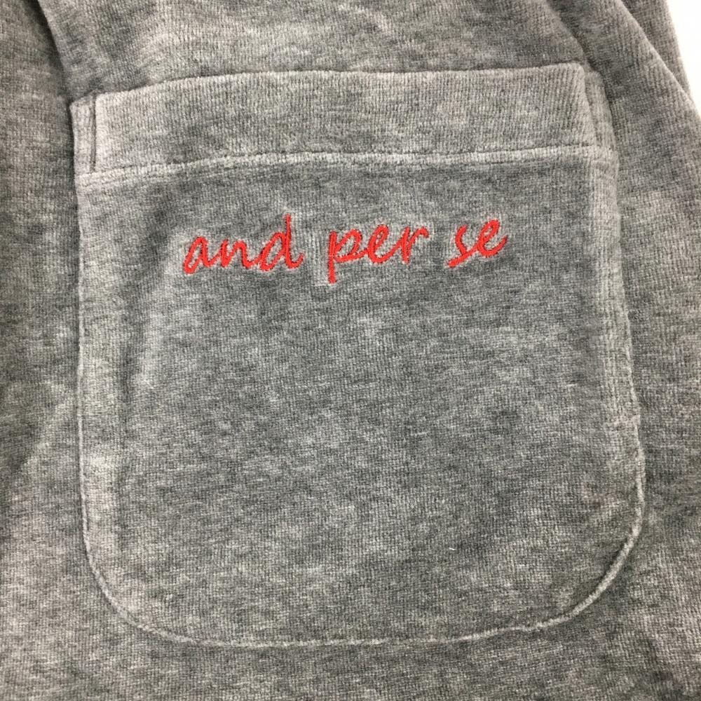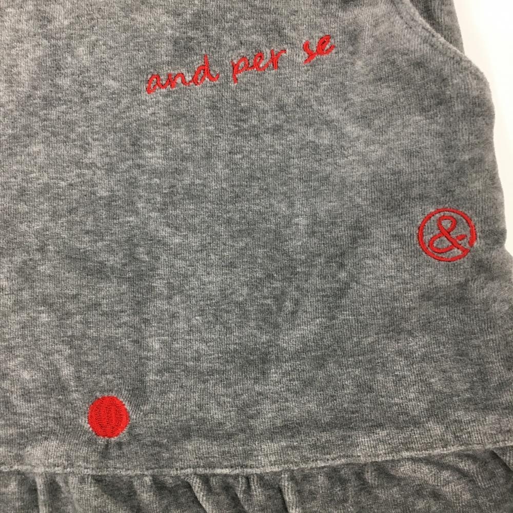 【美品】アンパスィ スカート グレー×レッド ロゴ刺しゅう ウエスト一部ゴム ベロア調 レディース M ゴルフウェア サンプル品 and per se