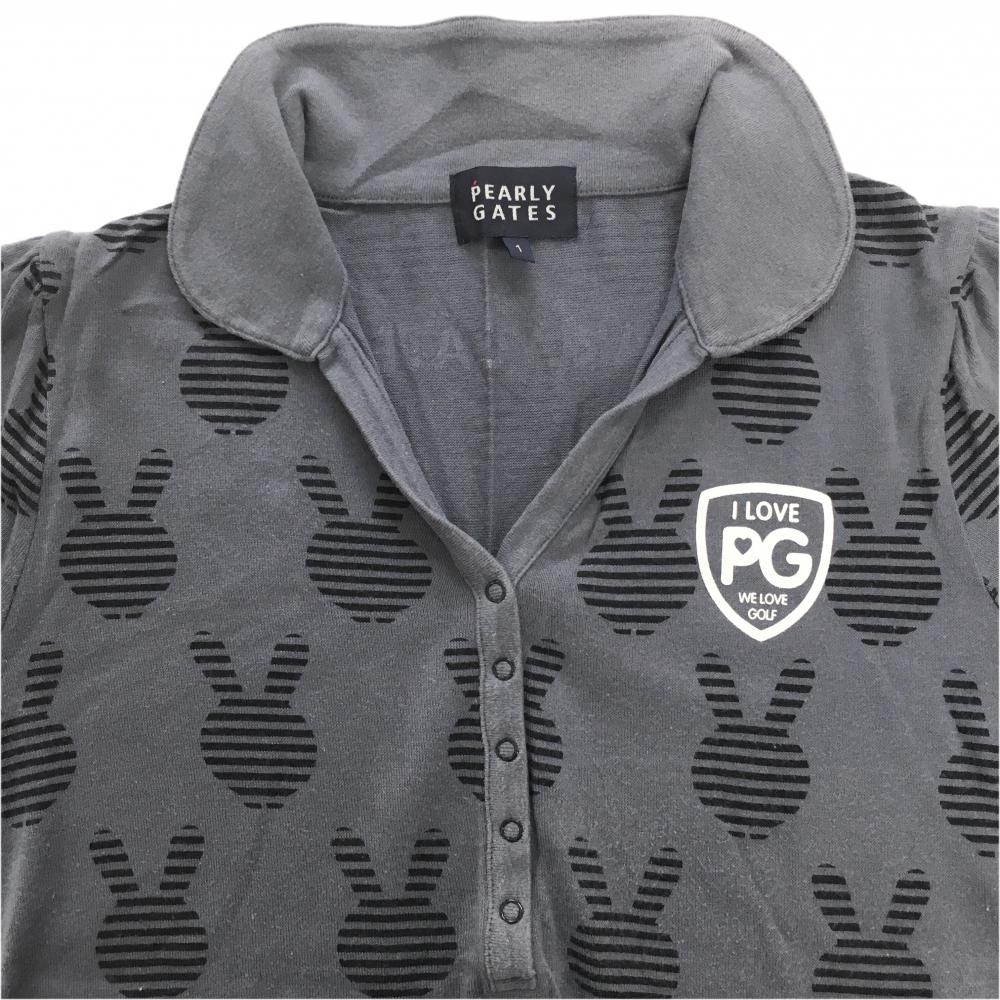 パーリーゲイツ 半袖スキッパーシャツ グレー×黒 ラビット柄 スナップボタン レディース 1(M) ゴルフウェア PEARLY GATES