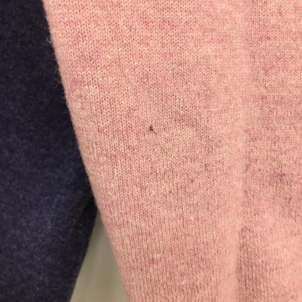 ラフアンドスウェル ニットカーディガン パープルネイビー×ピンク 袖2ライン ウール100% メンズ L ゴルフウェア rough&swell
