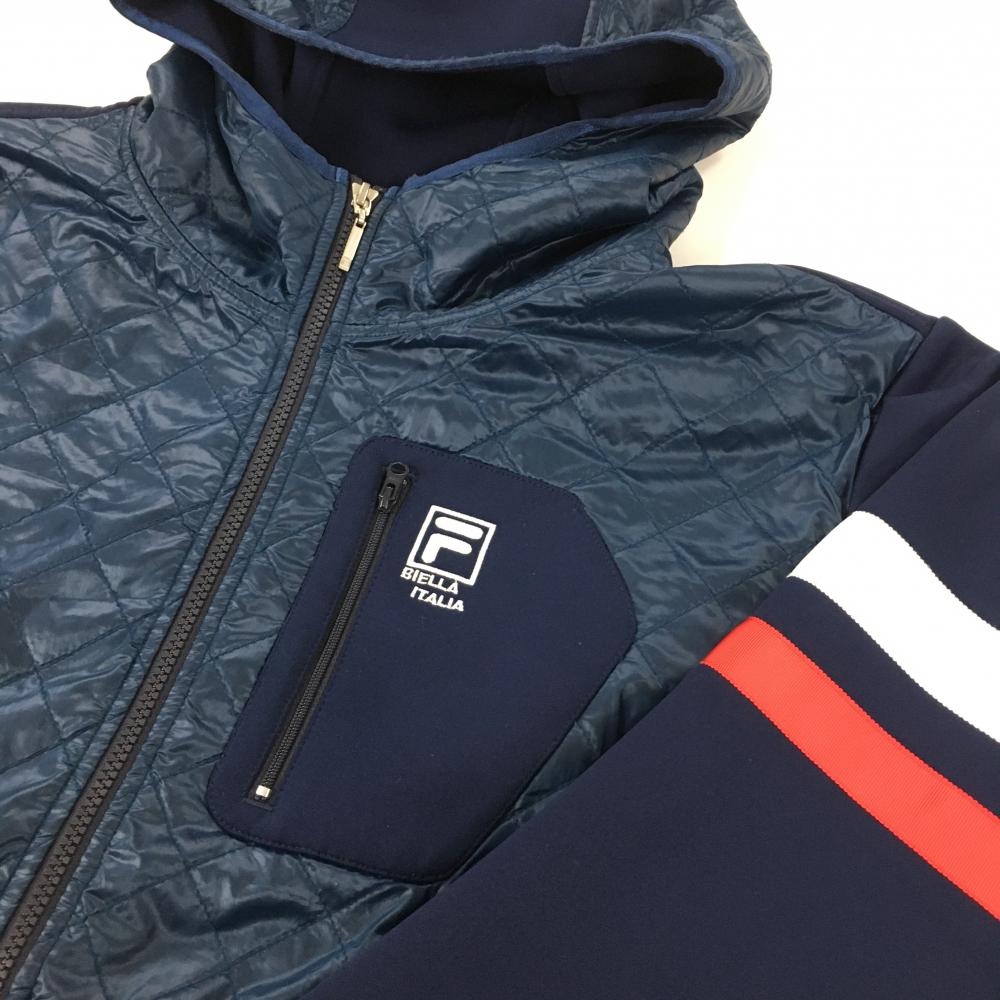 フィラゴルフ 中綿ジャケット ネイビー×白 前面中綿 袖・裾ライン 異素材切替 メンズ LL ゴルフウェア FILA GOLF