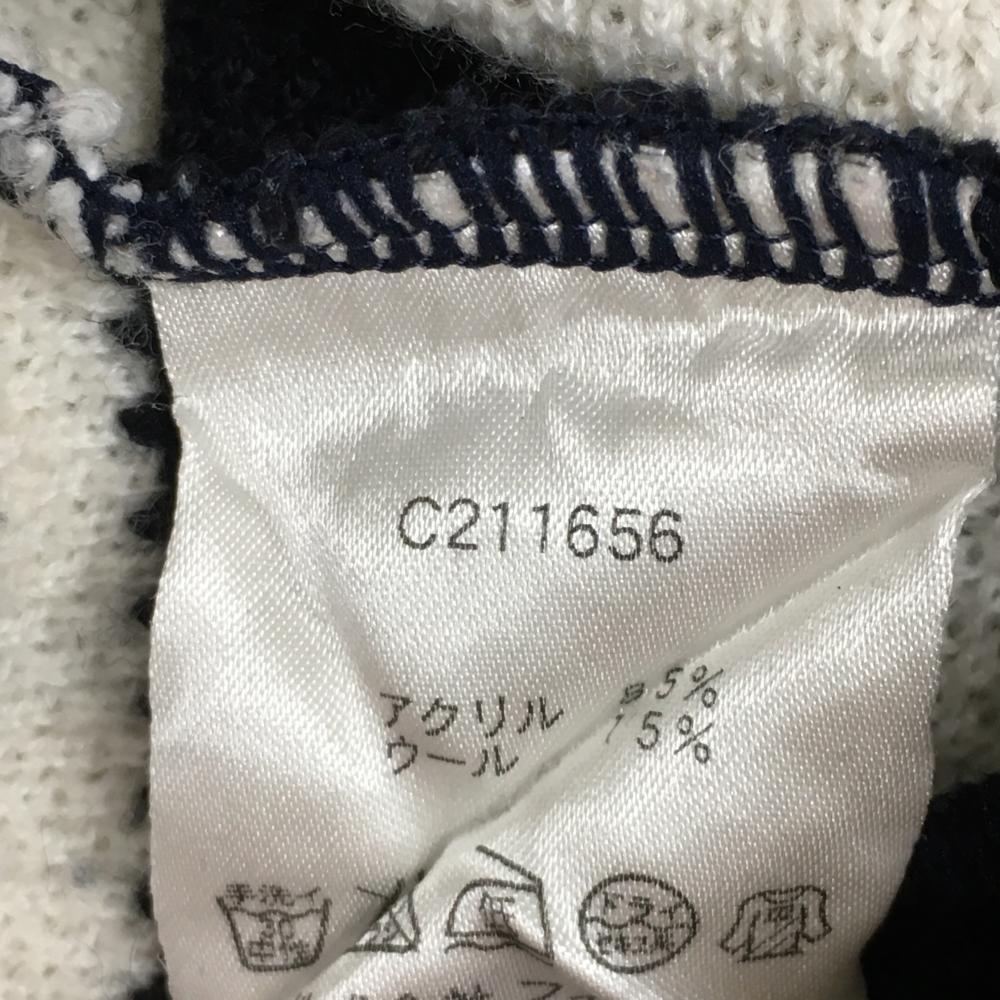 フィドラ ニットパーカー 白×ネイビー ボーダー柄 ロゴワッペン ウール混 レディース S/P ゴルフウェア FIDRA