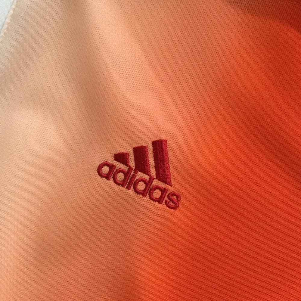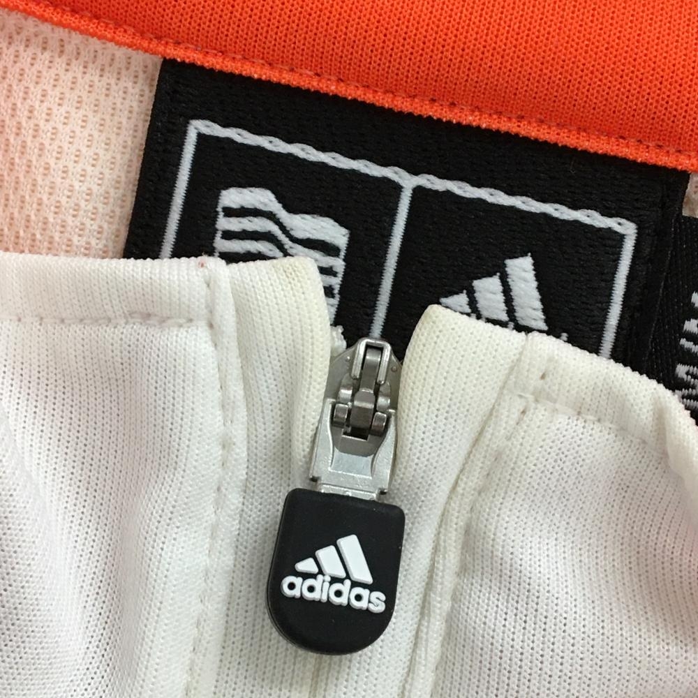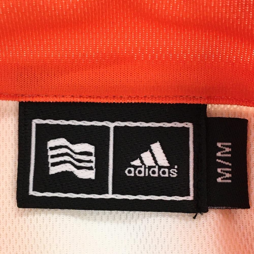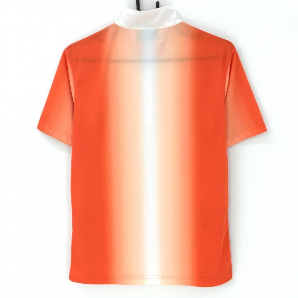 【美品】アディダス 半袖ハイネックシャツ オレンジ×白 グラデーションプリント ハーフジップ メンズ M/M ゴルフウェア adidas