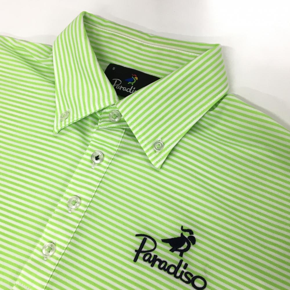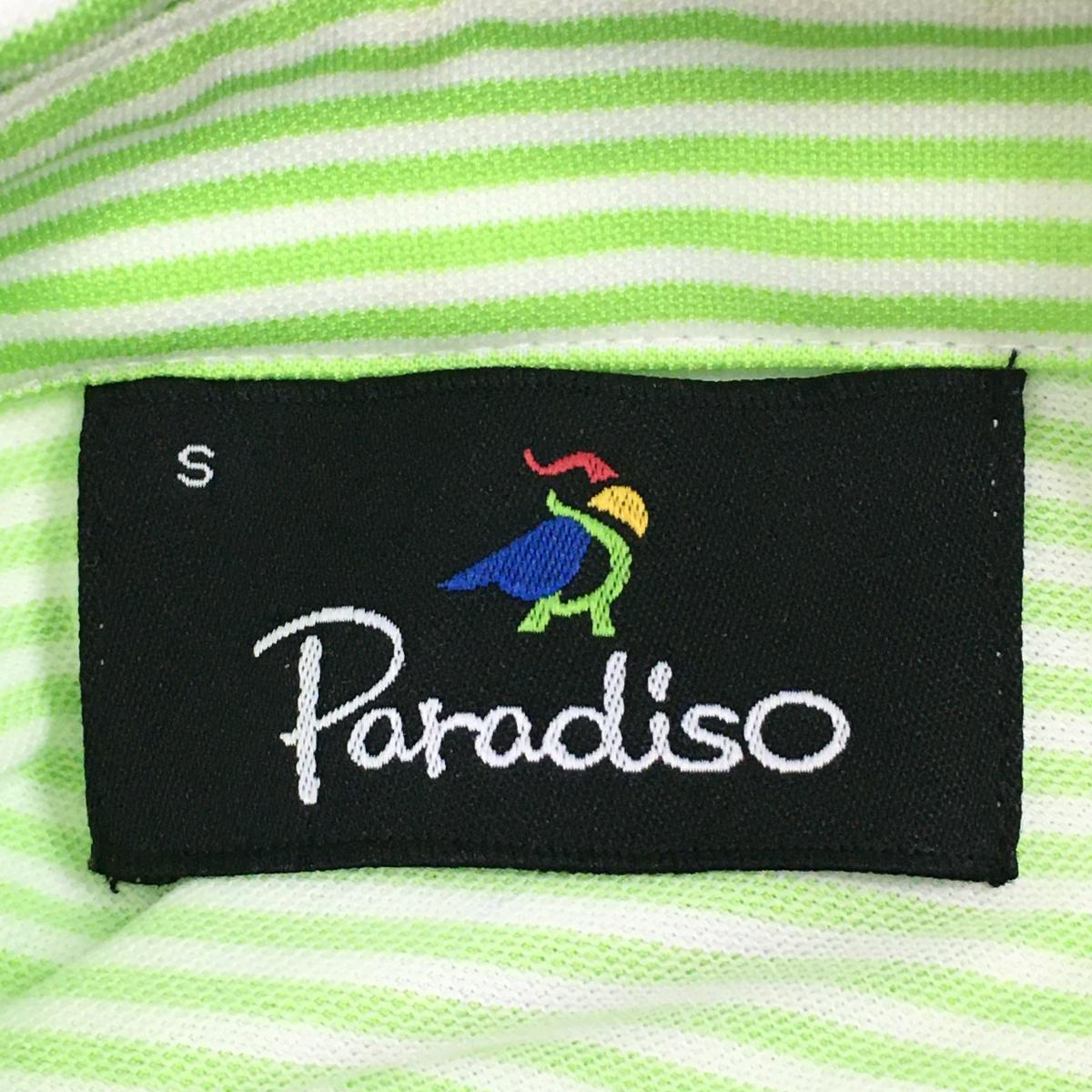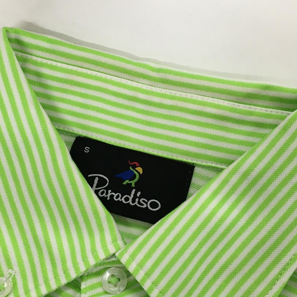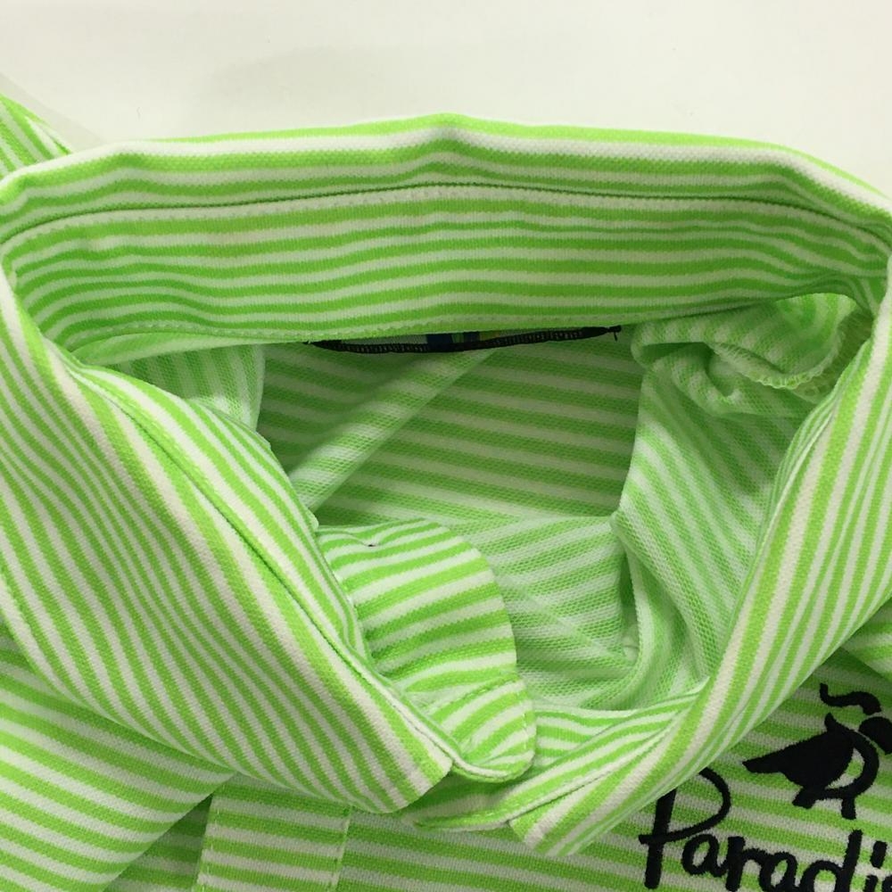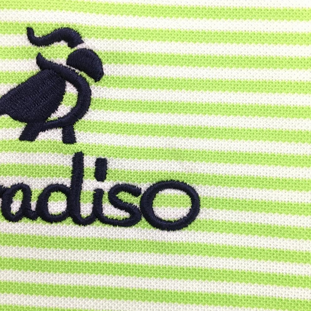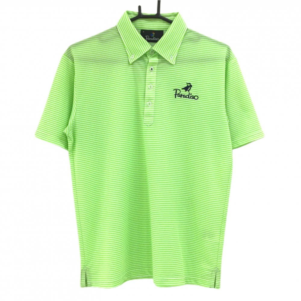 パラディーゾ 半袖ポロシャツ ライトグリーン×白 ボーダー 胸ロゴ刺しゅう メンズ S ゴルフウェア Paradiso