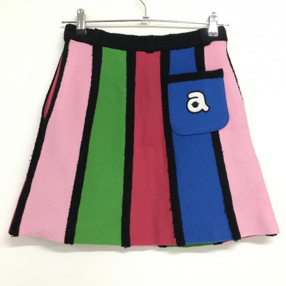 【美品】アルチビオ ニットスカート マルチカラー×黒 ストライプ ウール混 カラフル レディース 36(S) ゴルフウェア archivio
