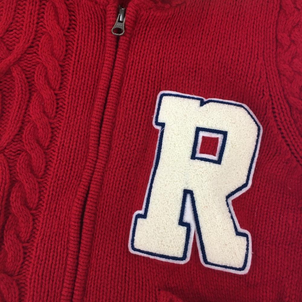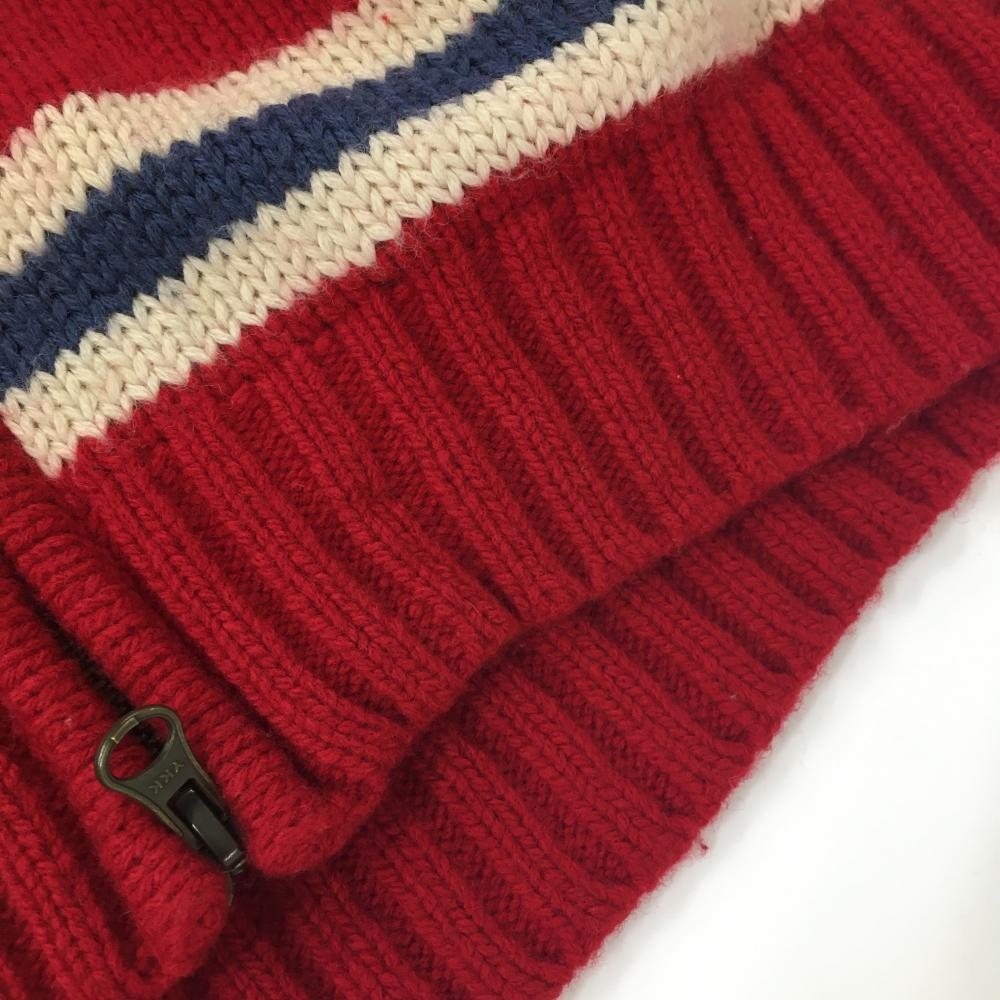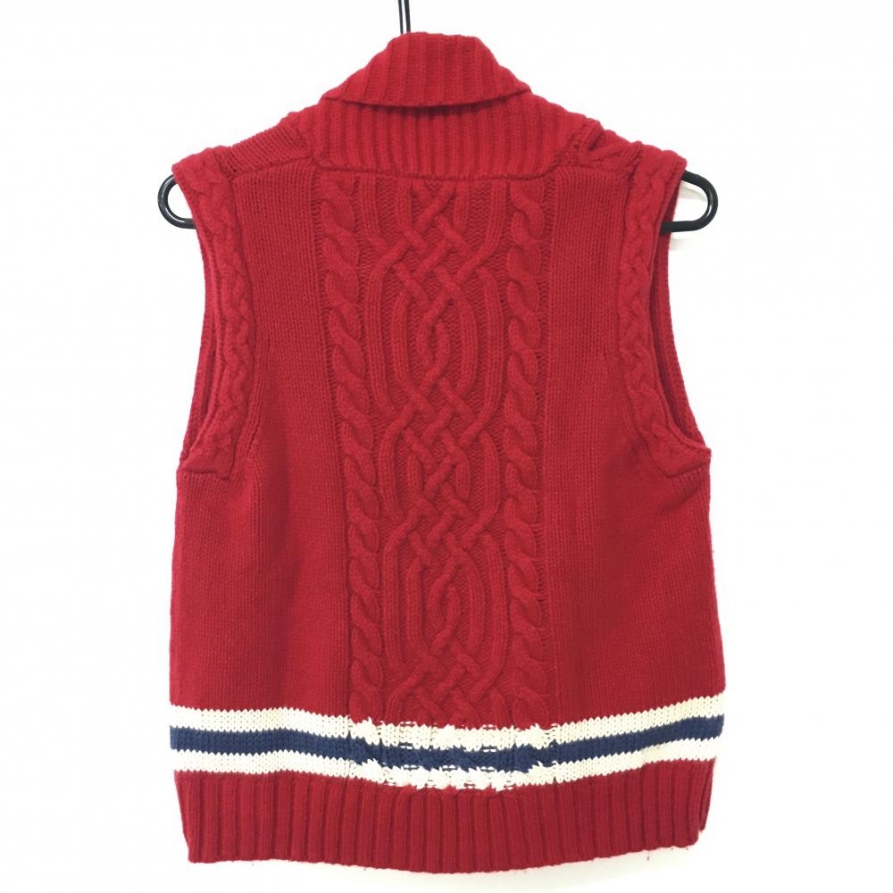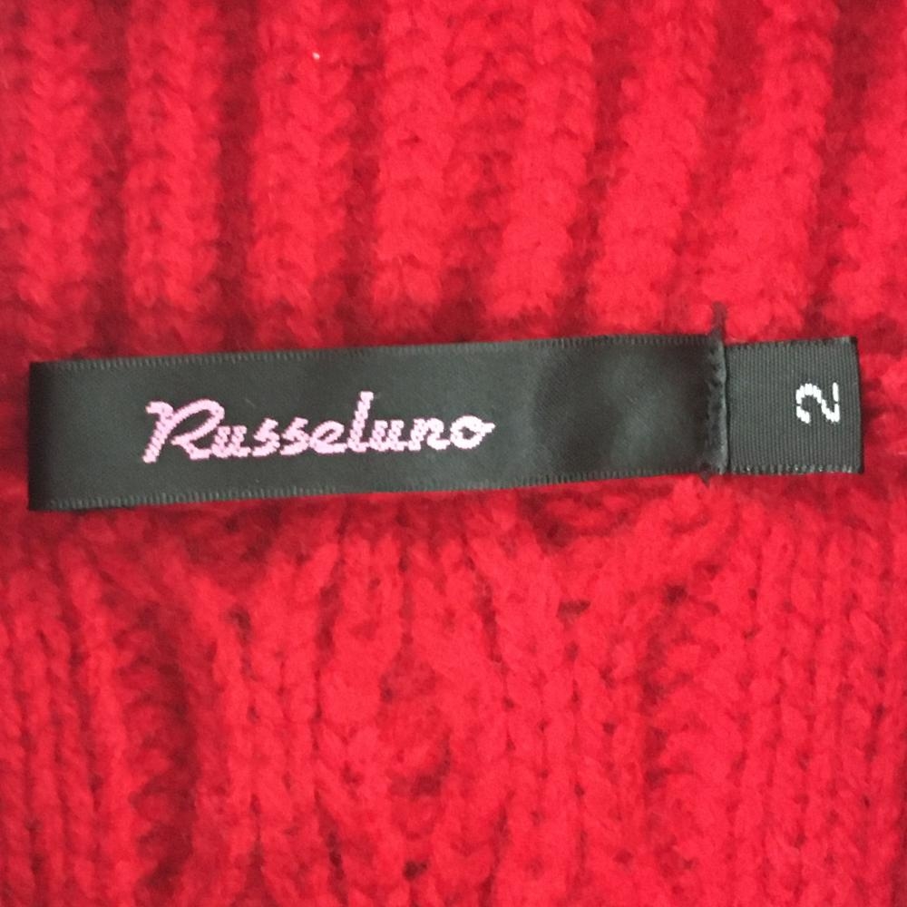 ラッセルノ ニットジップベスト レッド×白 ビッグワッペン レディース 2(L) ゴルフウェア RUSSELUNO