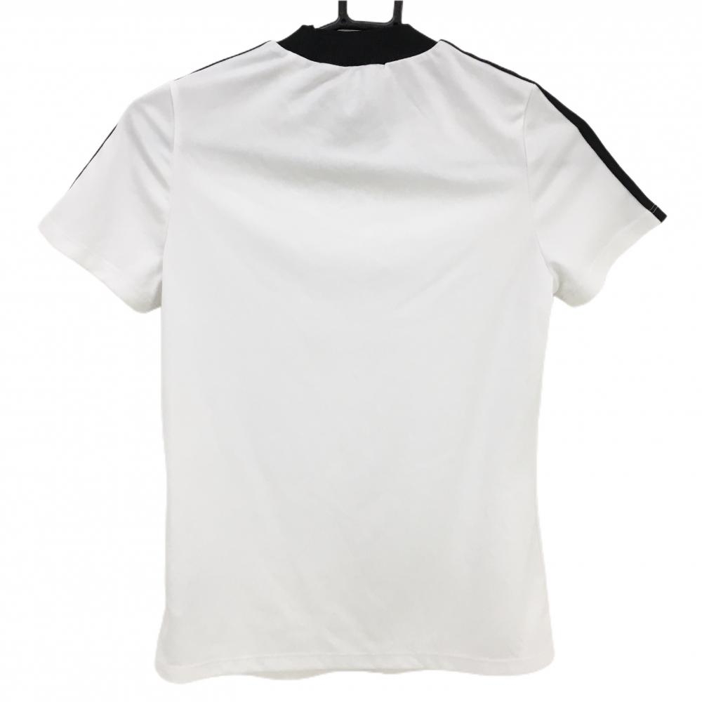 【美品】アディダス 半袖ハイネックシャツ 白×黒 肩3ライン レディース S ゴルフウェア adidas
